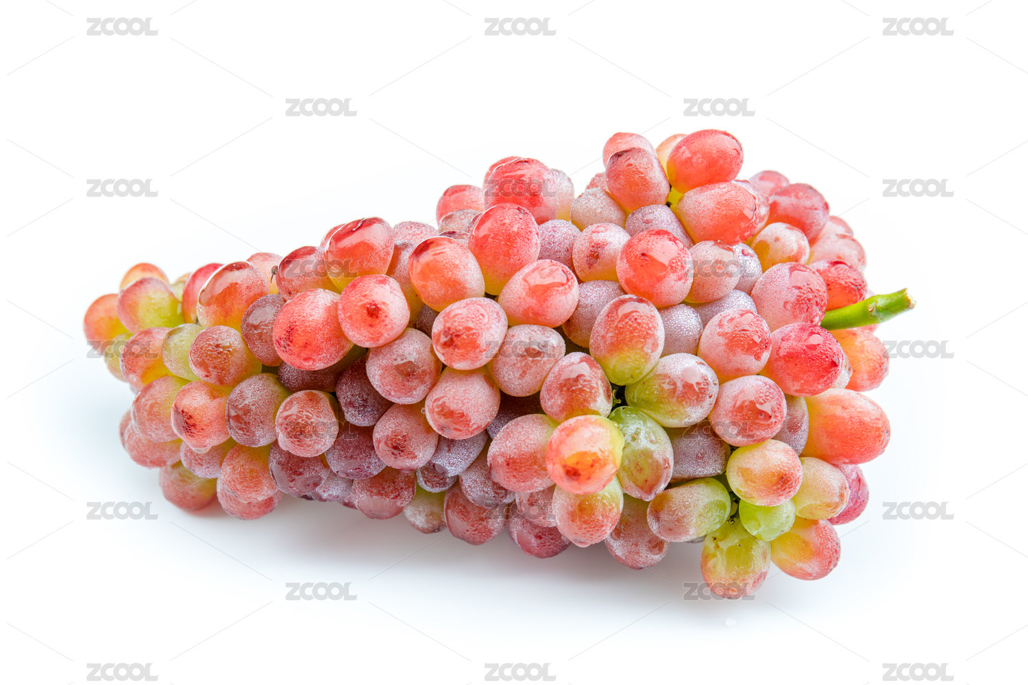白色背景中一串新鲜的无籽红提