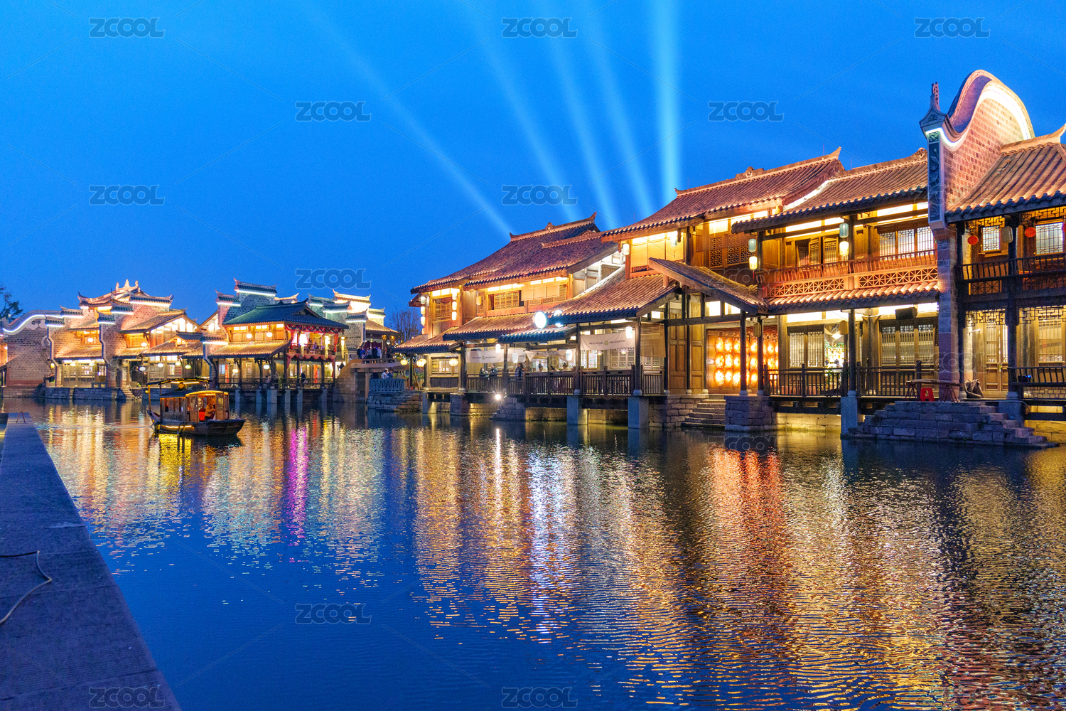 中国湖南湘西凤凰古城沱江两岸漂亮的夜景风光
