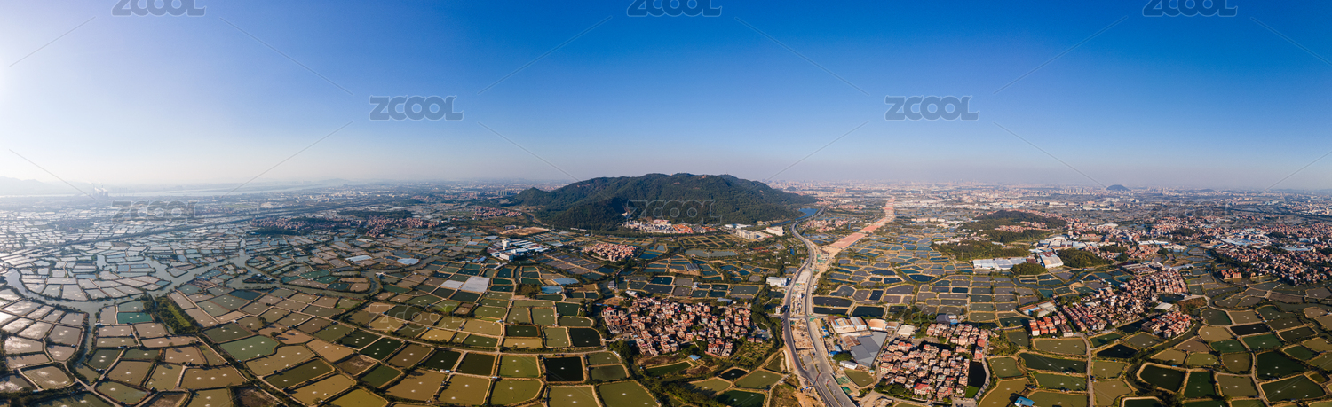中国佛山西樵山风景名胜区和桑基鱼塘全景