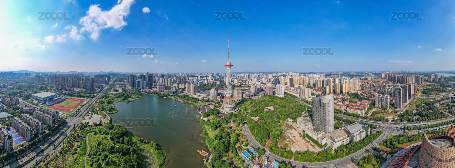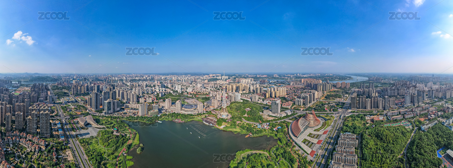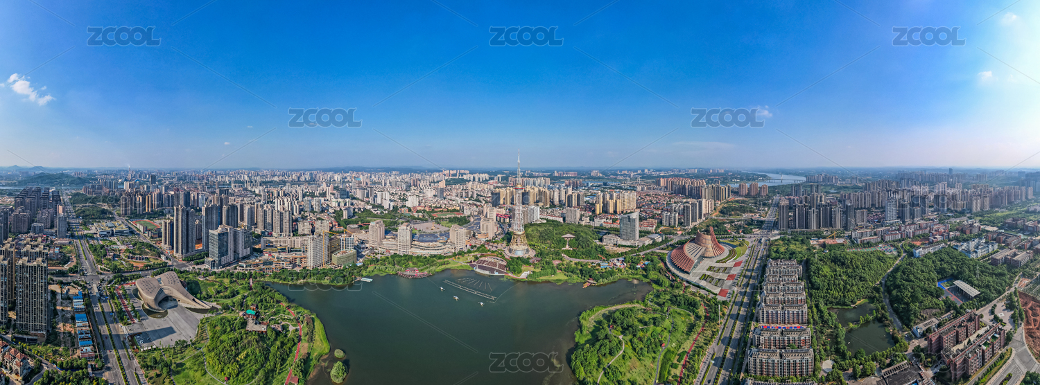 中国长沙市马栏山月湖公园航拍全景图