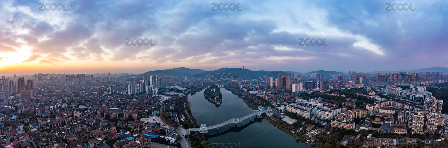 中国江西赣州城市日落全景图航拍
