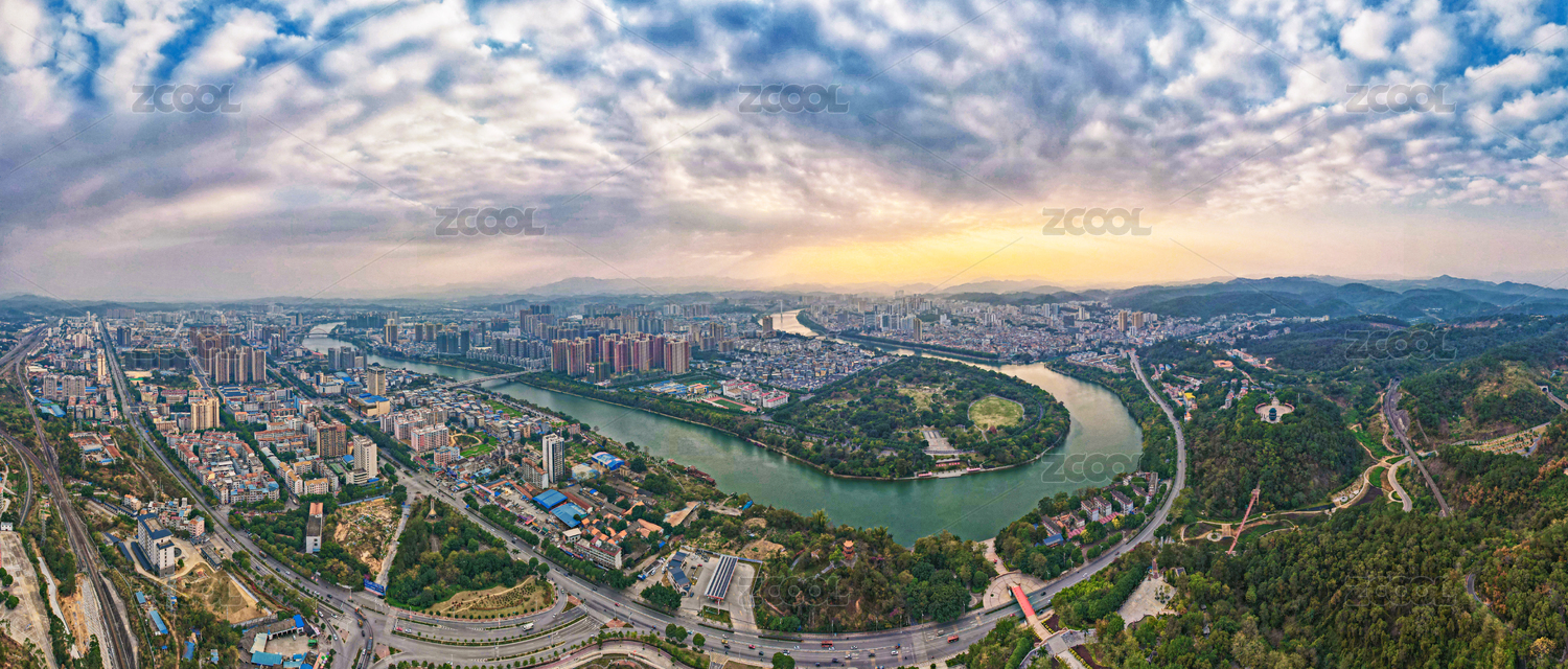 广西百色城市建筑右江大转弯夕阳落日风光