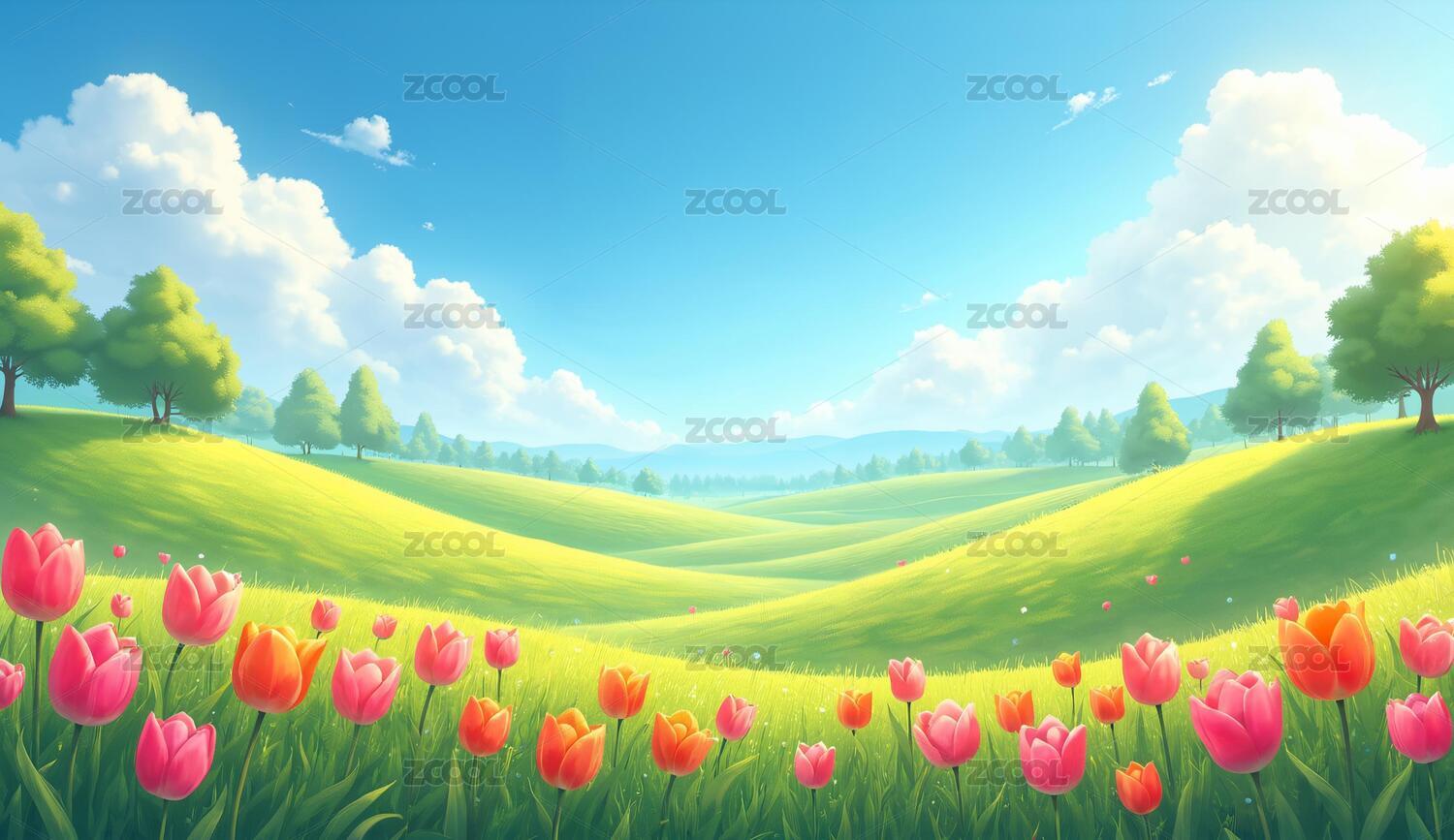 宁静,插画,春天,云,天空,自然,高山,草原,自然美,夏至