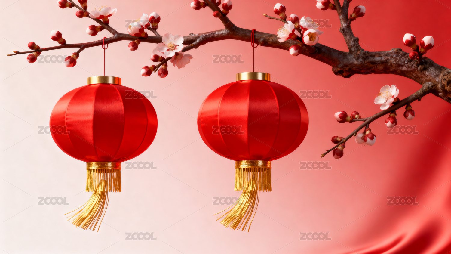 喜庆的红色灯笼与梅花