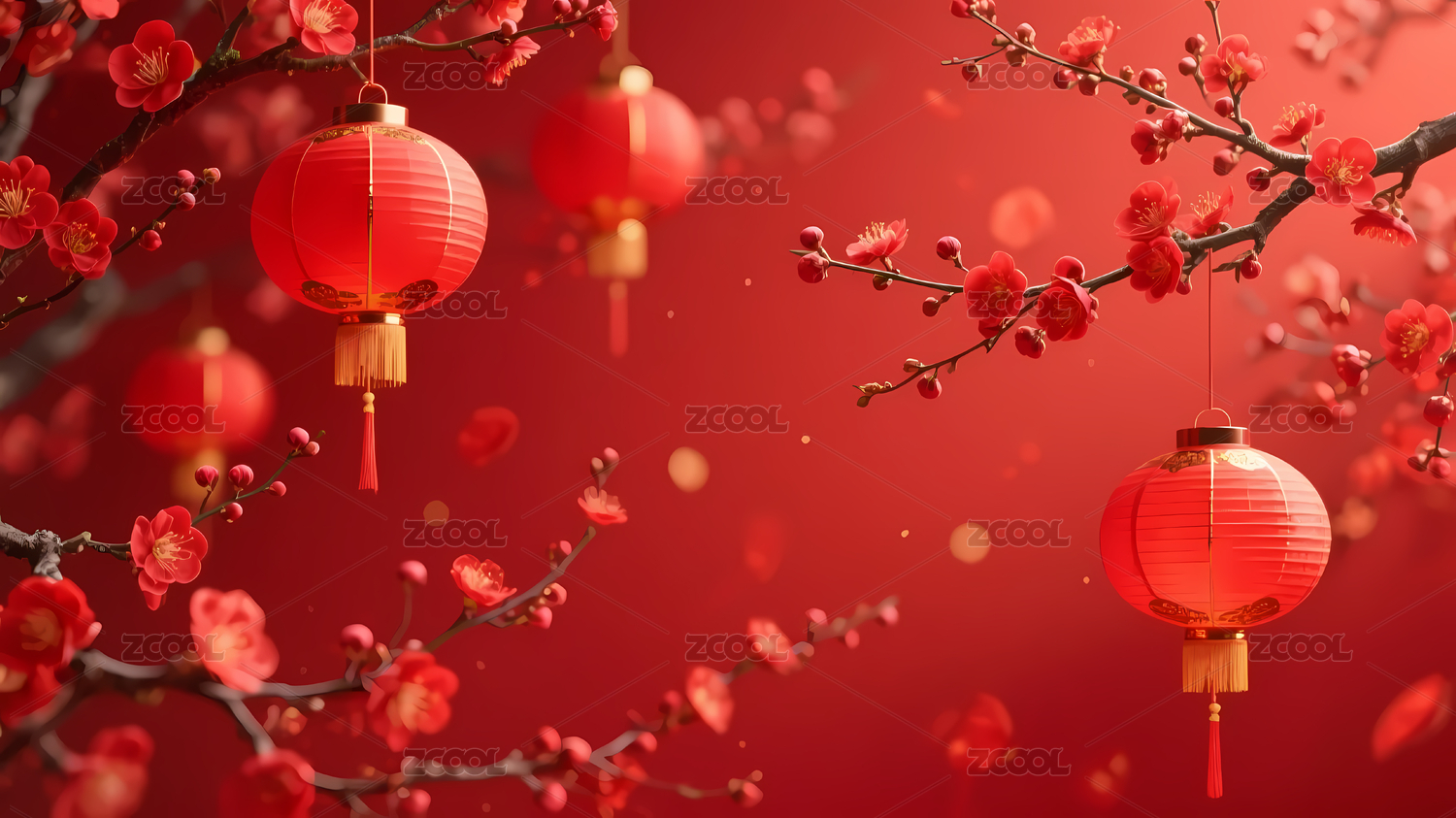 新年红色灯笼梅花氛围感背景