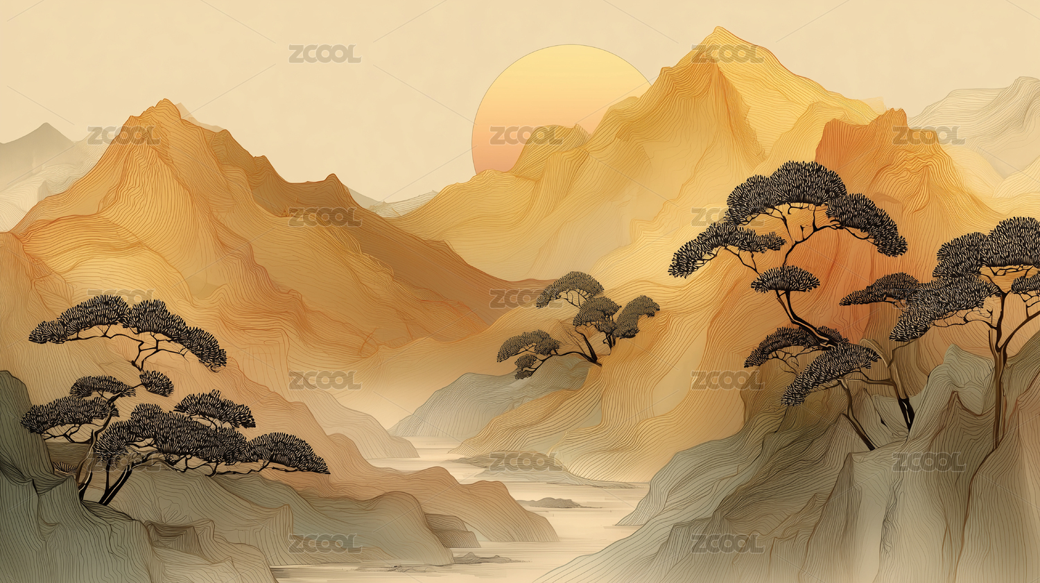 简约,山脉,山水画,风景,山川,背景,中式,国潮,山水,唯美