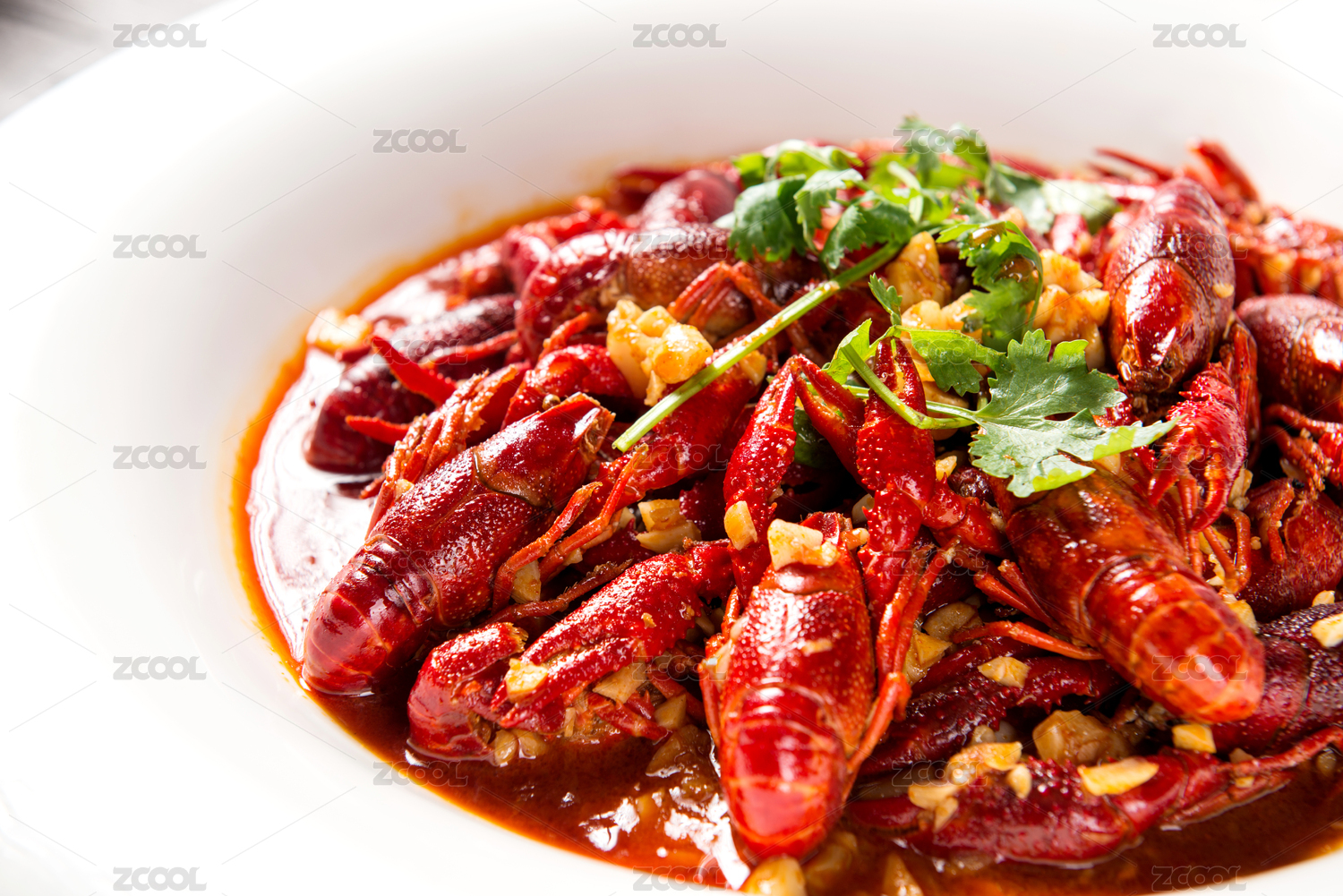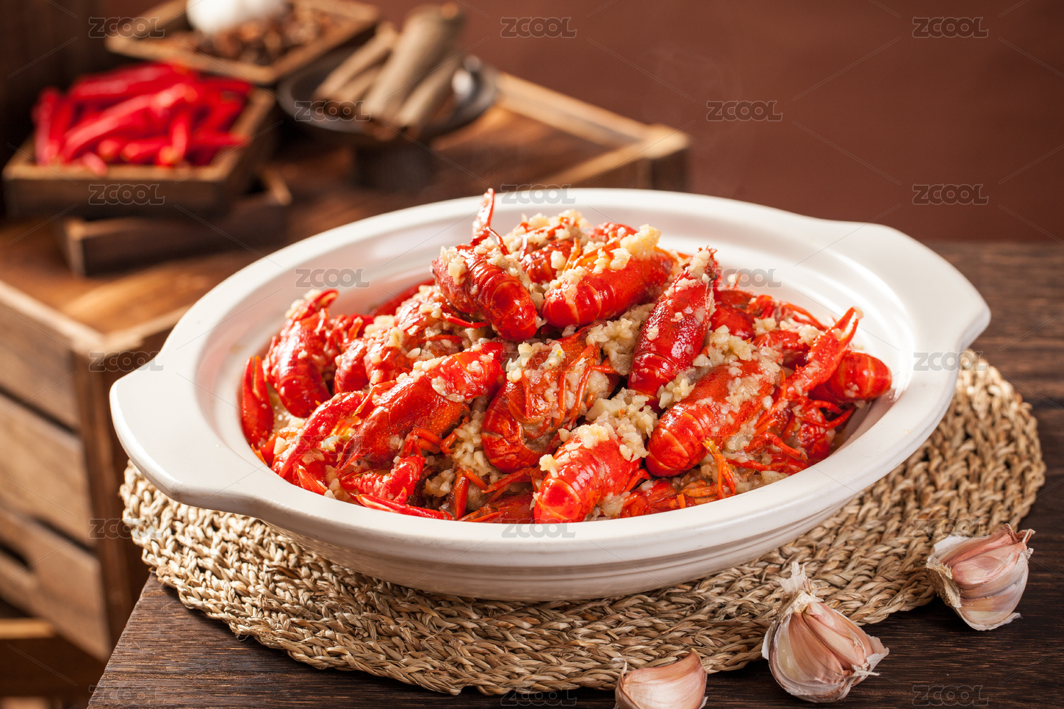 特色美食麻辣小龙虾盛放在不锈钢大盆里