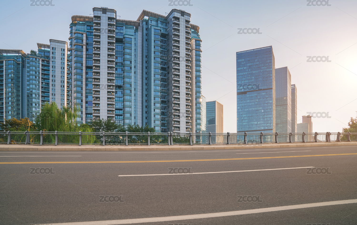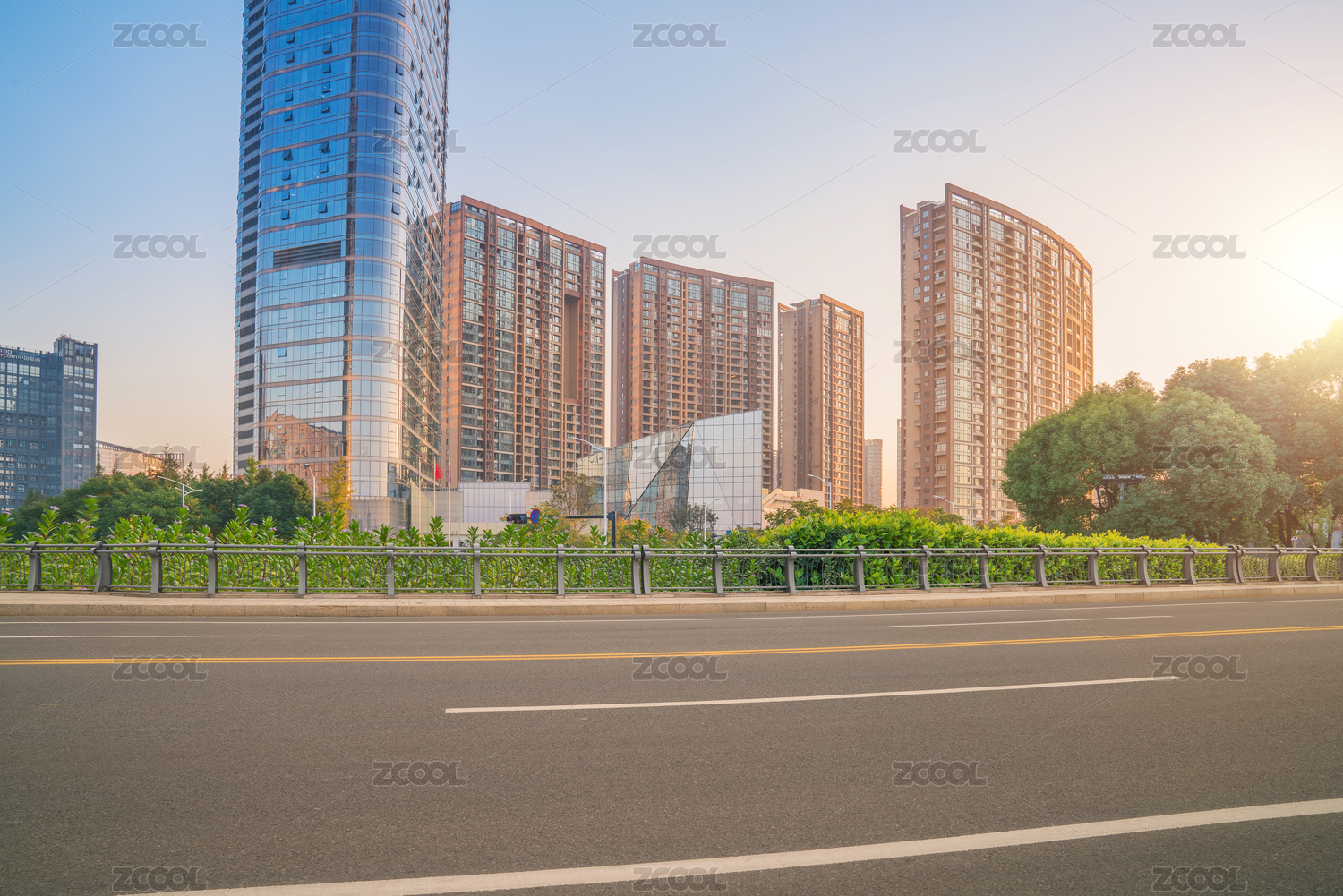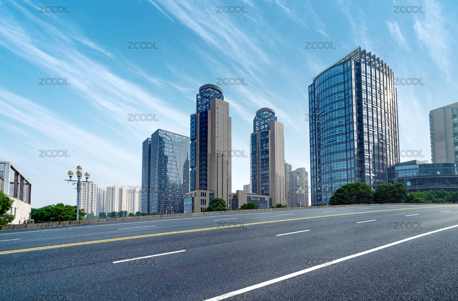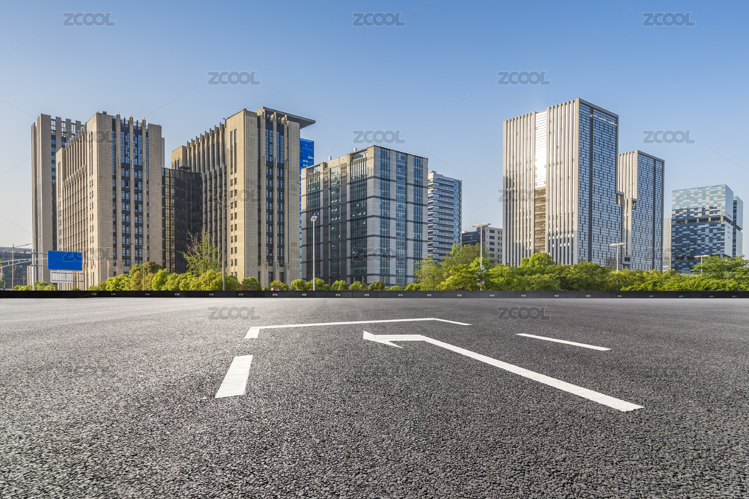 现代城市天际线与空旷路面