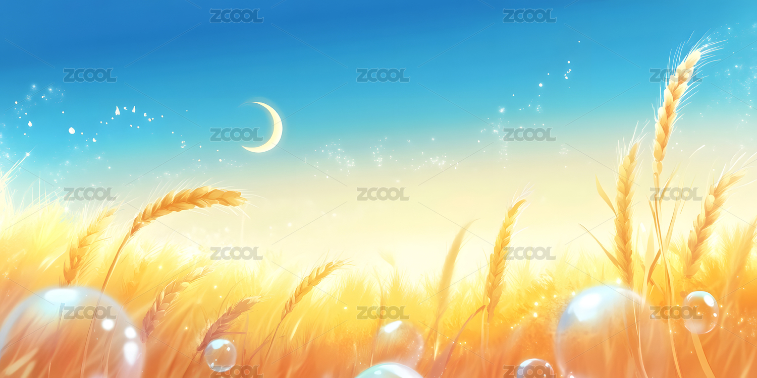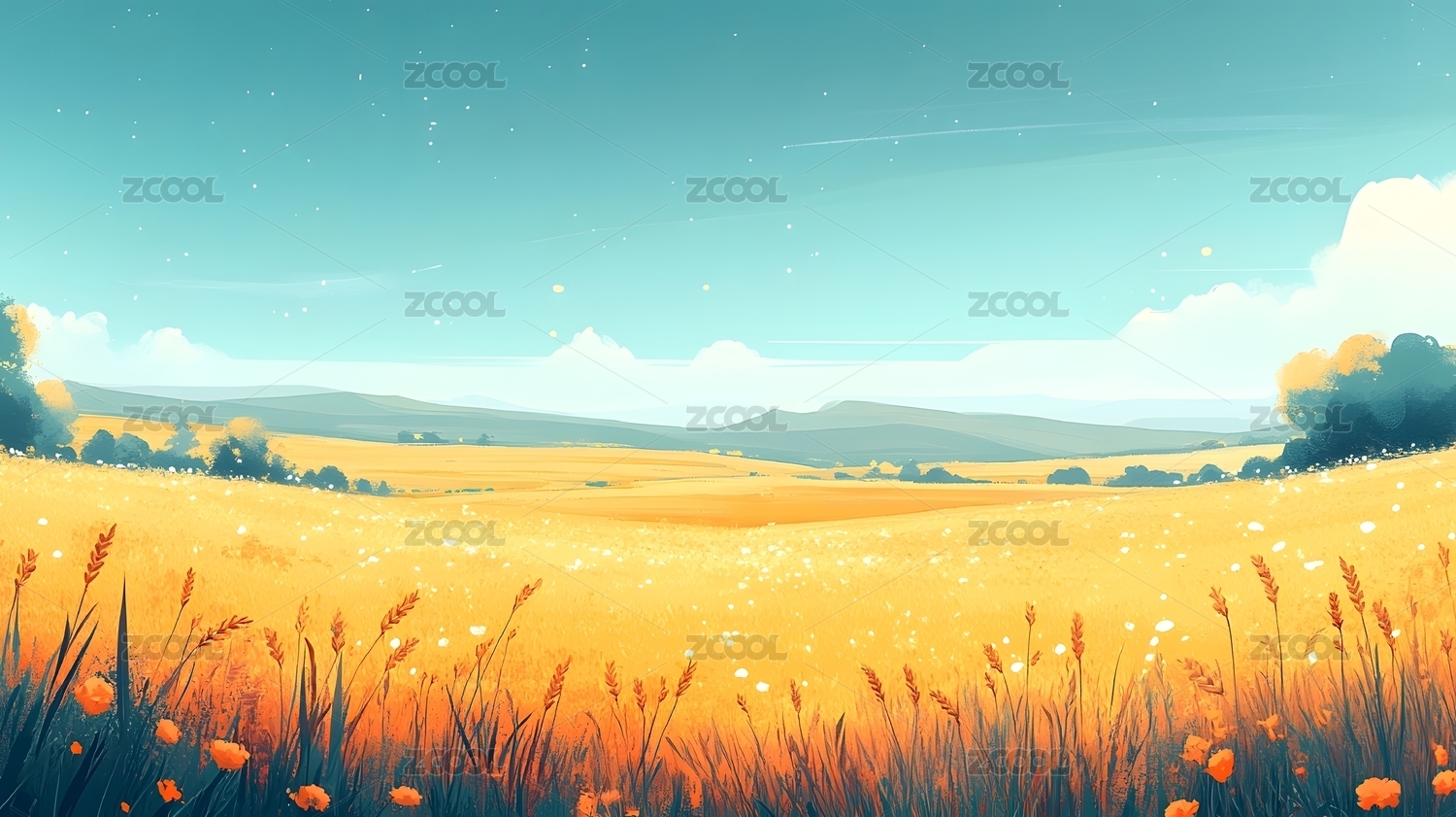 夏天户外自然节日大暑清新治愈唯美卡通漫画