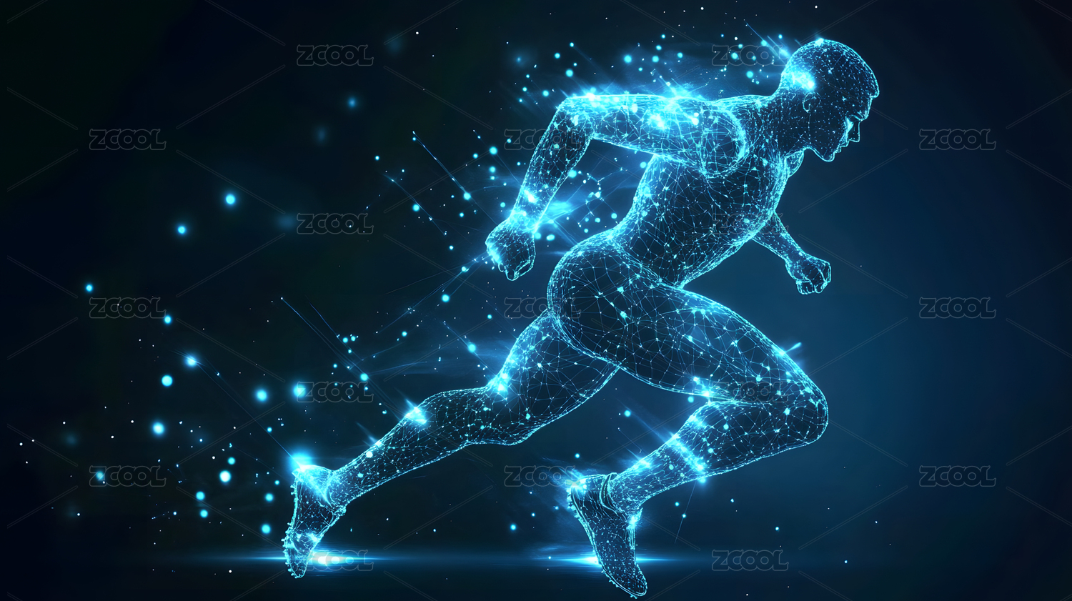 3D蓝色粒子人物奔跑