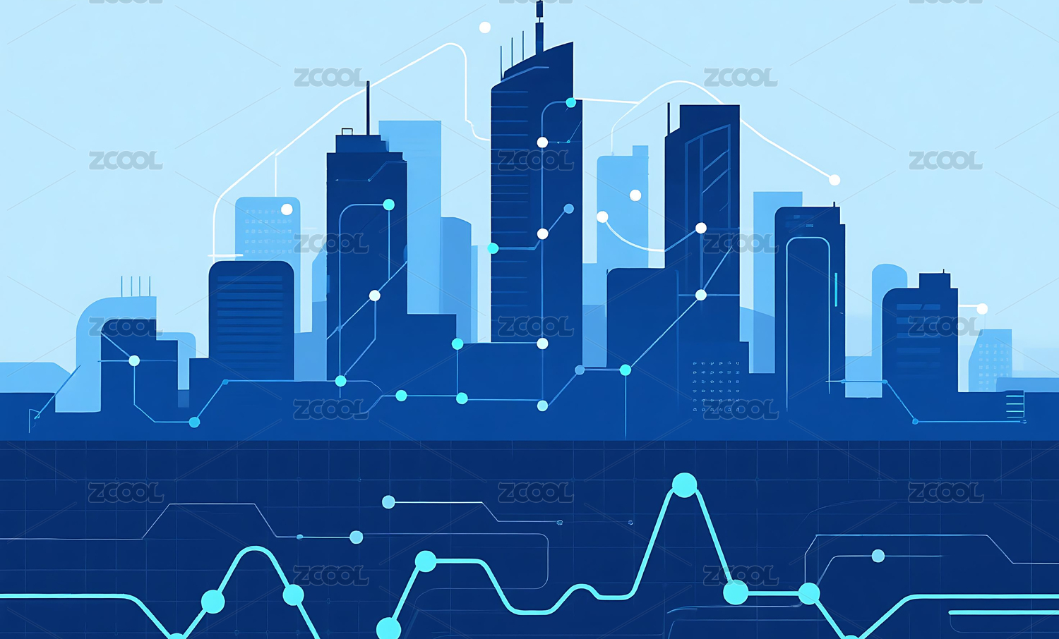 简约风格蓝色城市建筑轮廓图