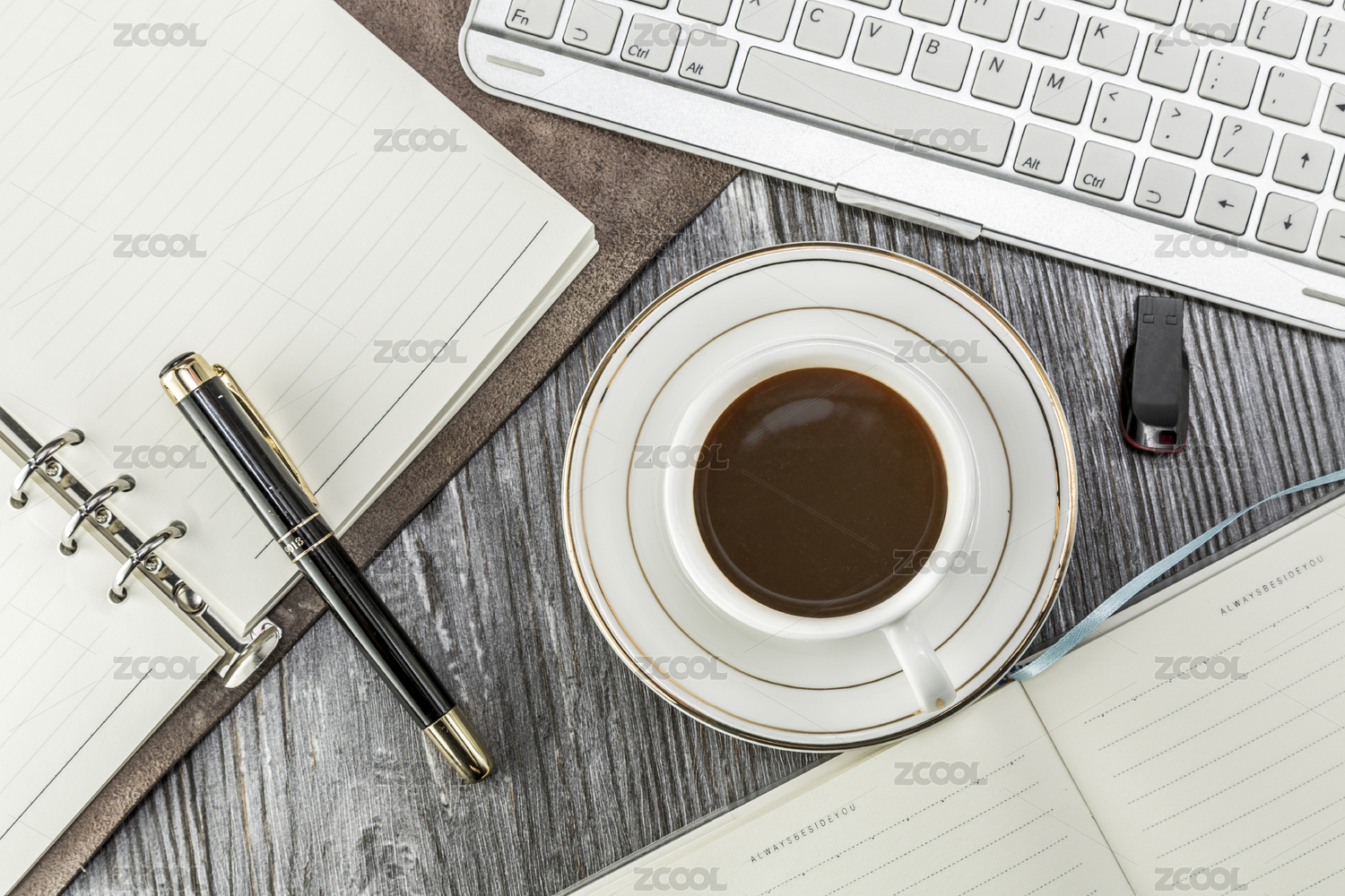 电脑咖啡纸笔商务办公