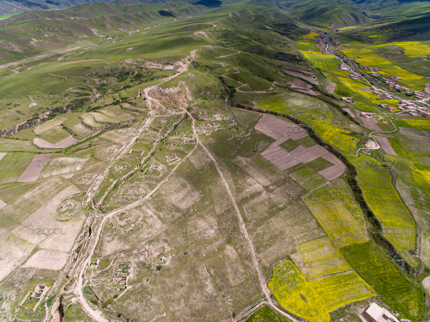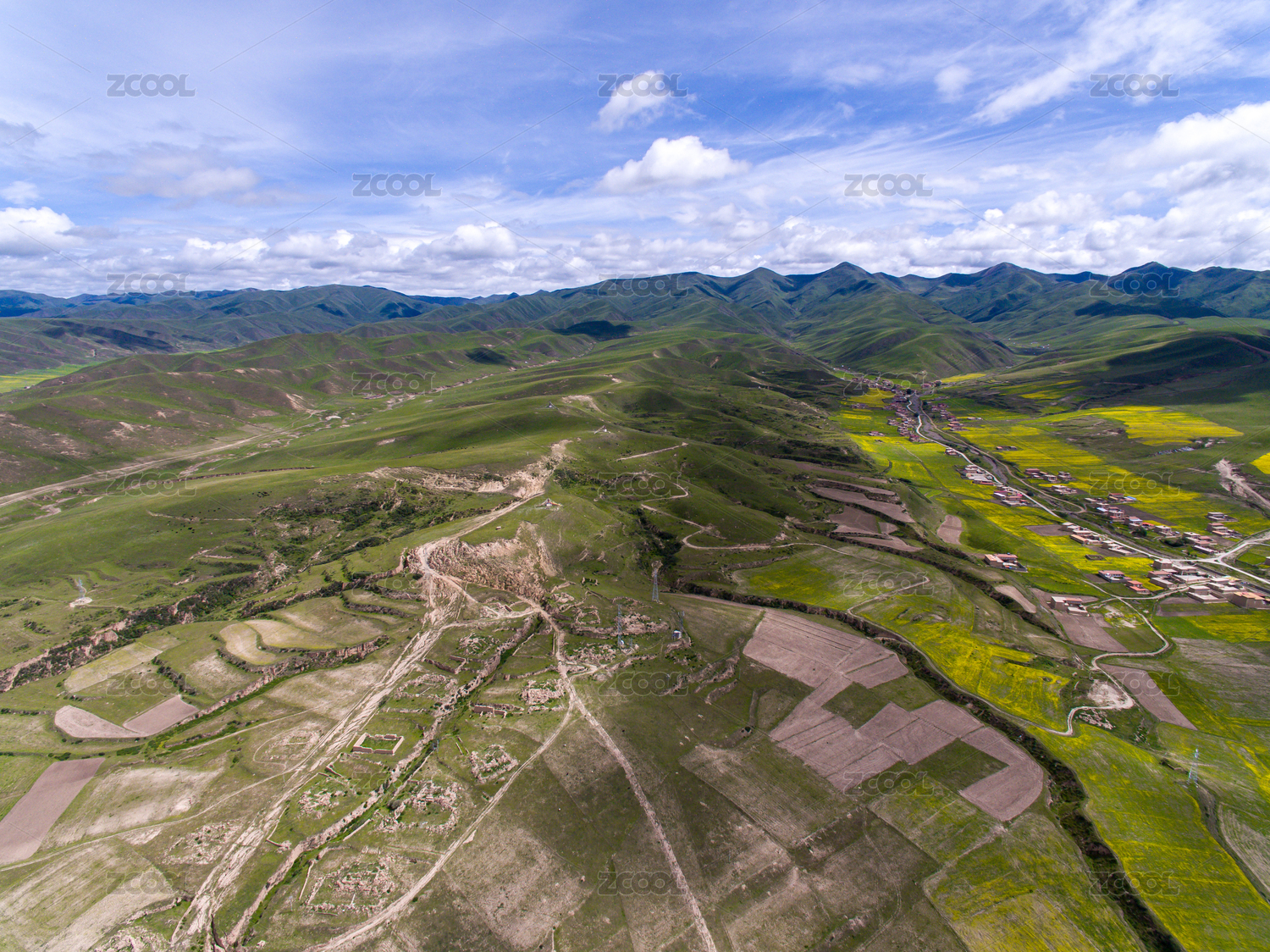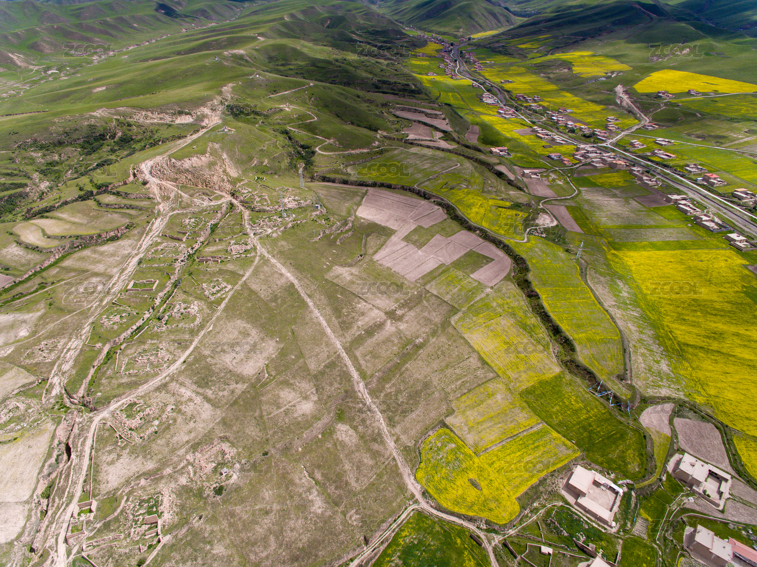 高原,乡村,田园,航拍,全景,风光,景色,自然,山脉,黄色