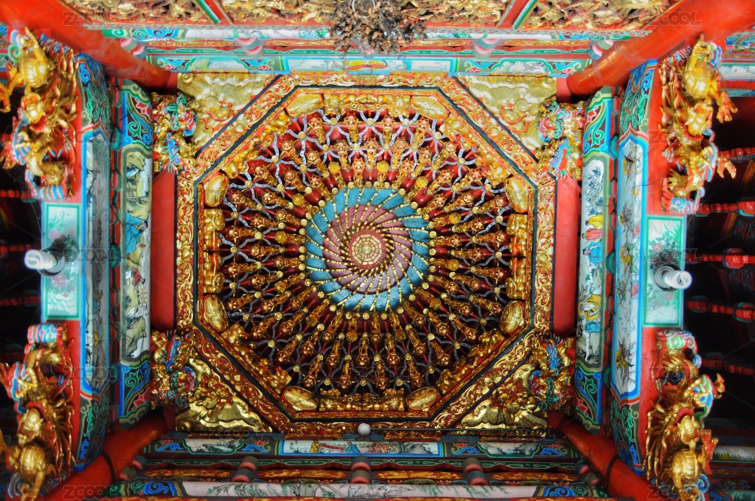 广东番禺莲花山大雄宝殿建筑室内屋顶仰视