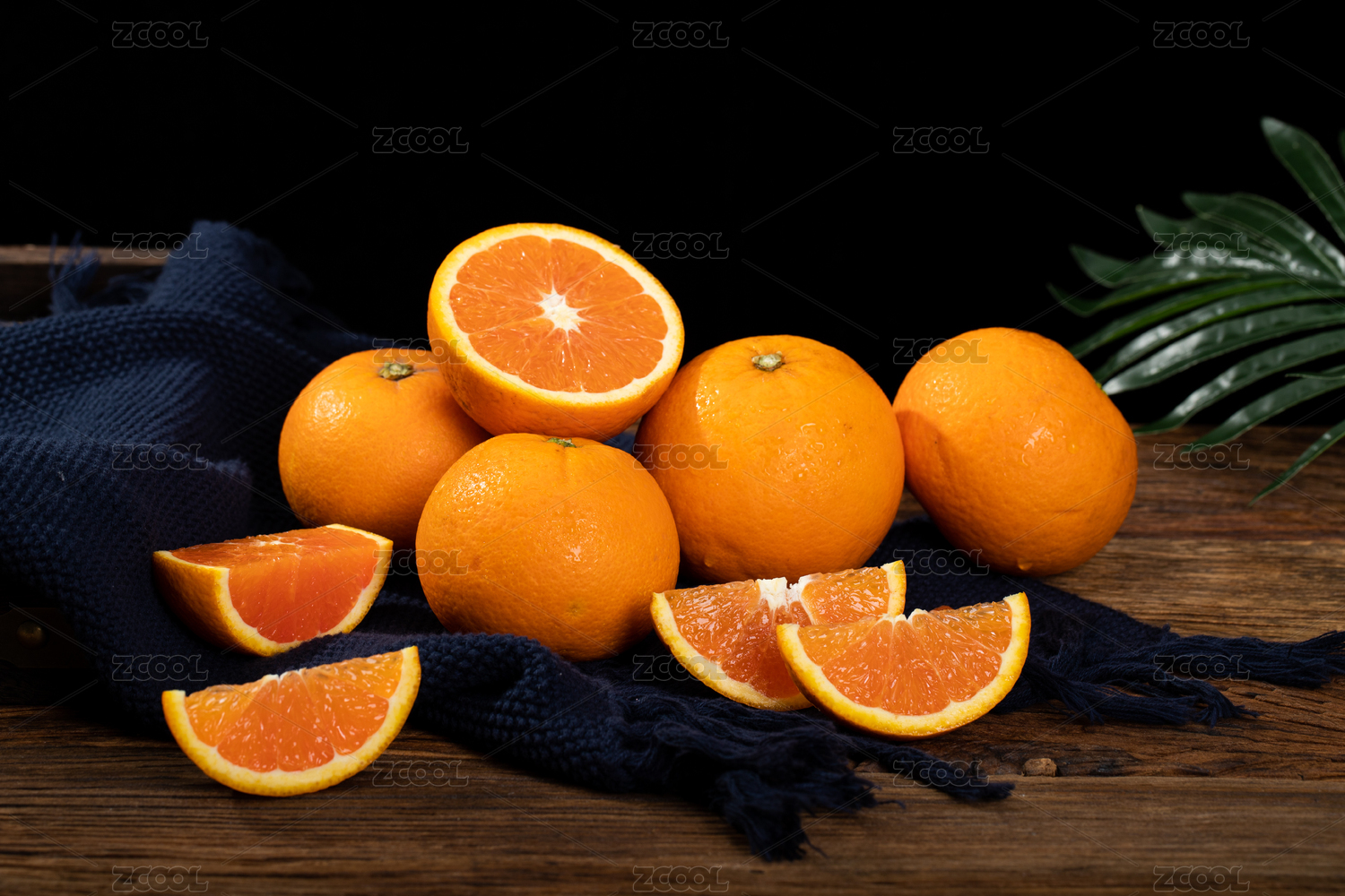 黑底上放着一个完整的香橙和切块的玫瑰香橙
