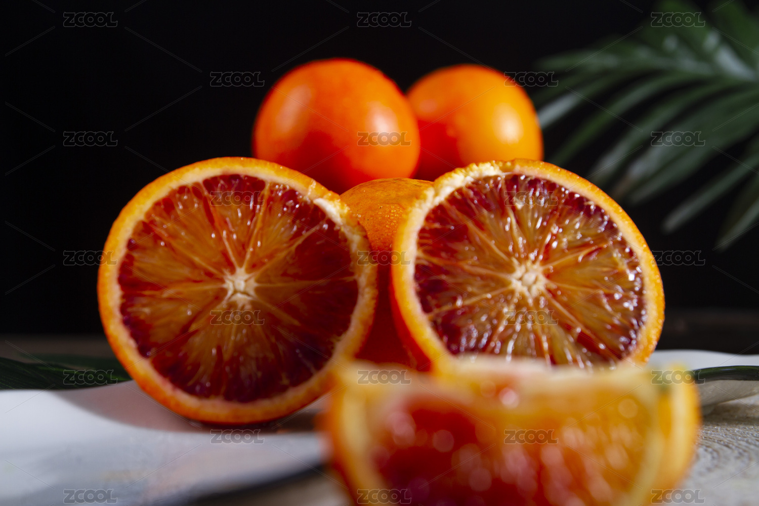 放在桌子上的切开的塔罗科血橙