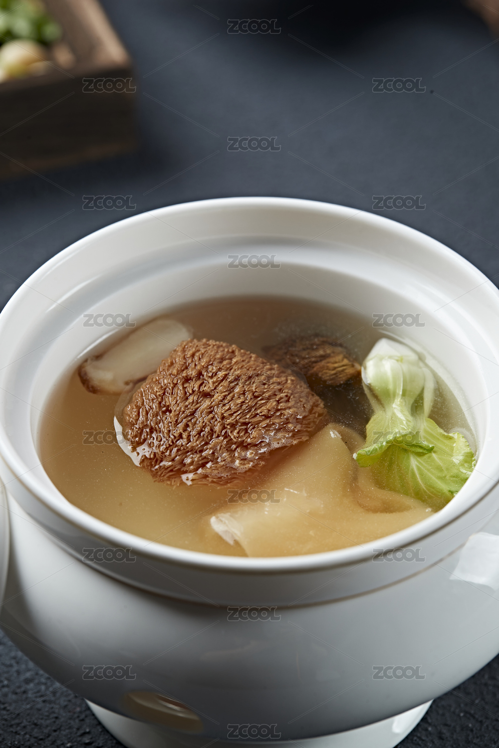 猴头菌花胶炖榛蘑汤
