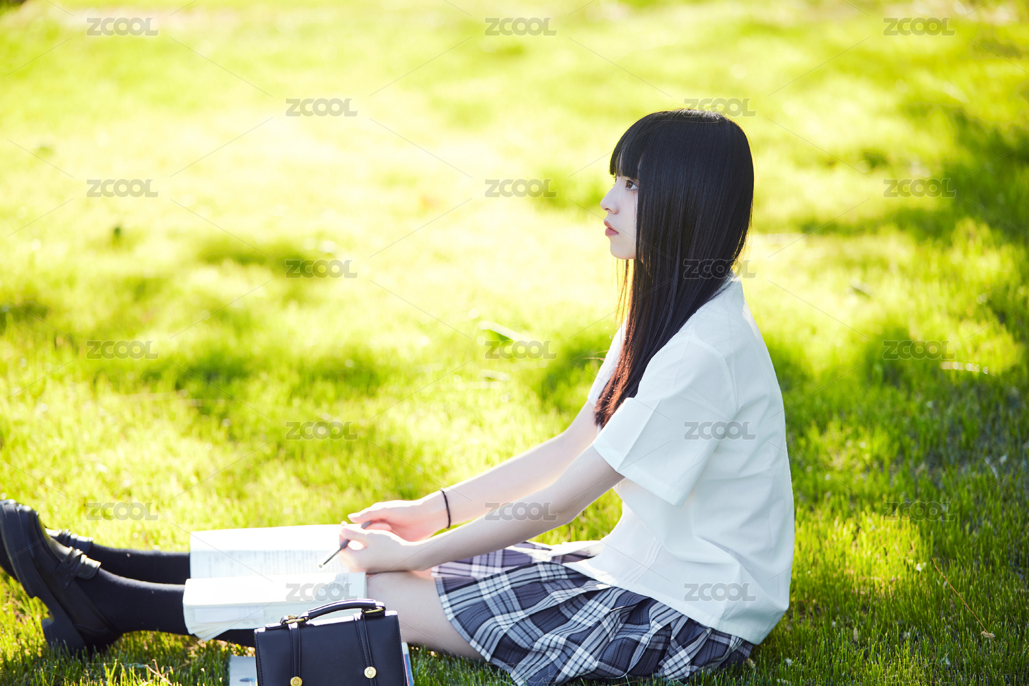 草坪,成人,高中女生,可爱,乐趣,女孩,女人,漂亮的,人像,日系