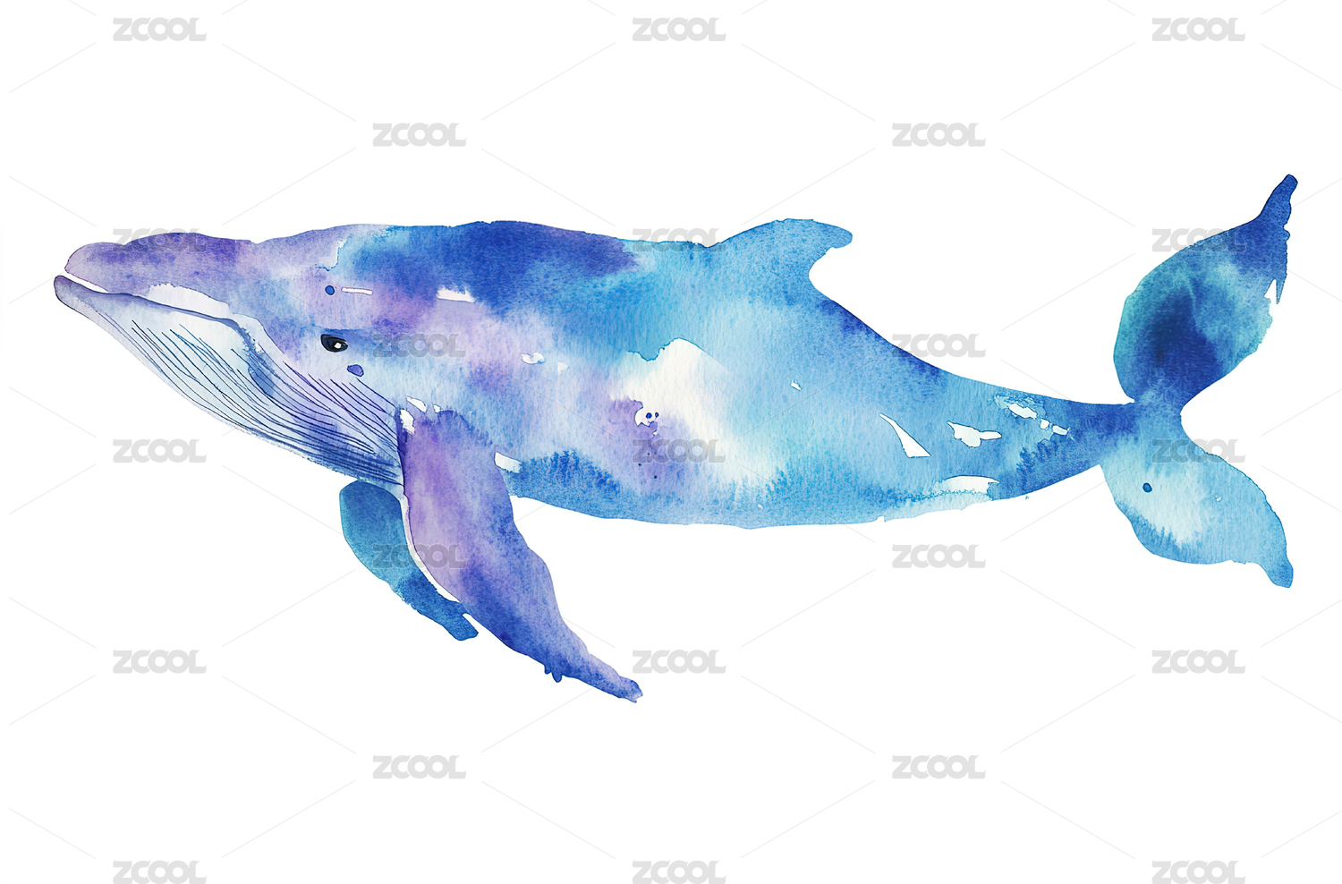 水彩风格蓝色鲸鱼