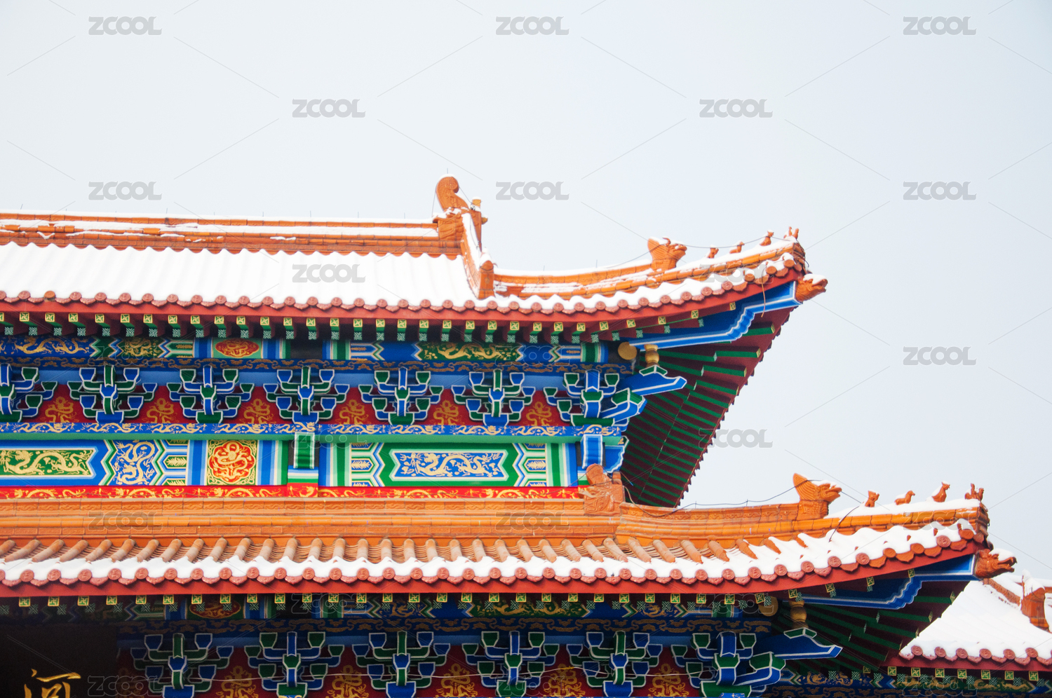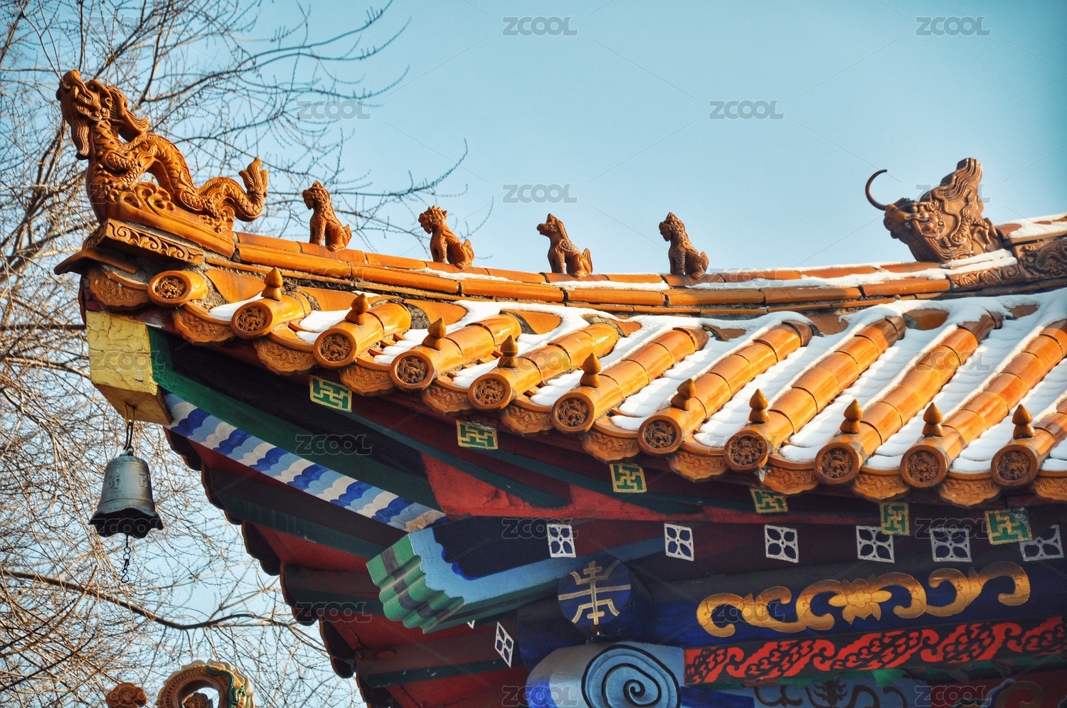 瑞雪故宫宫殿屋檐脊兽