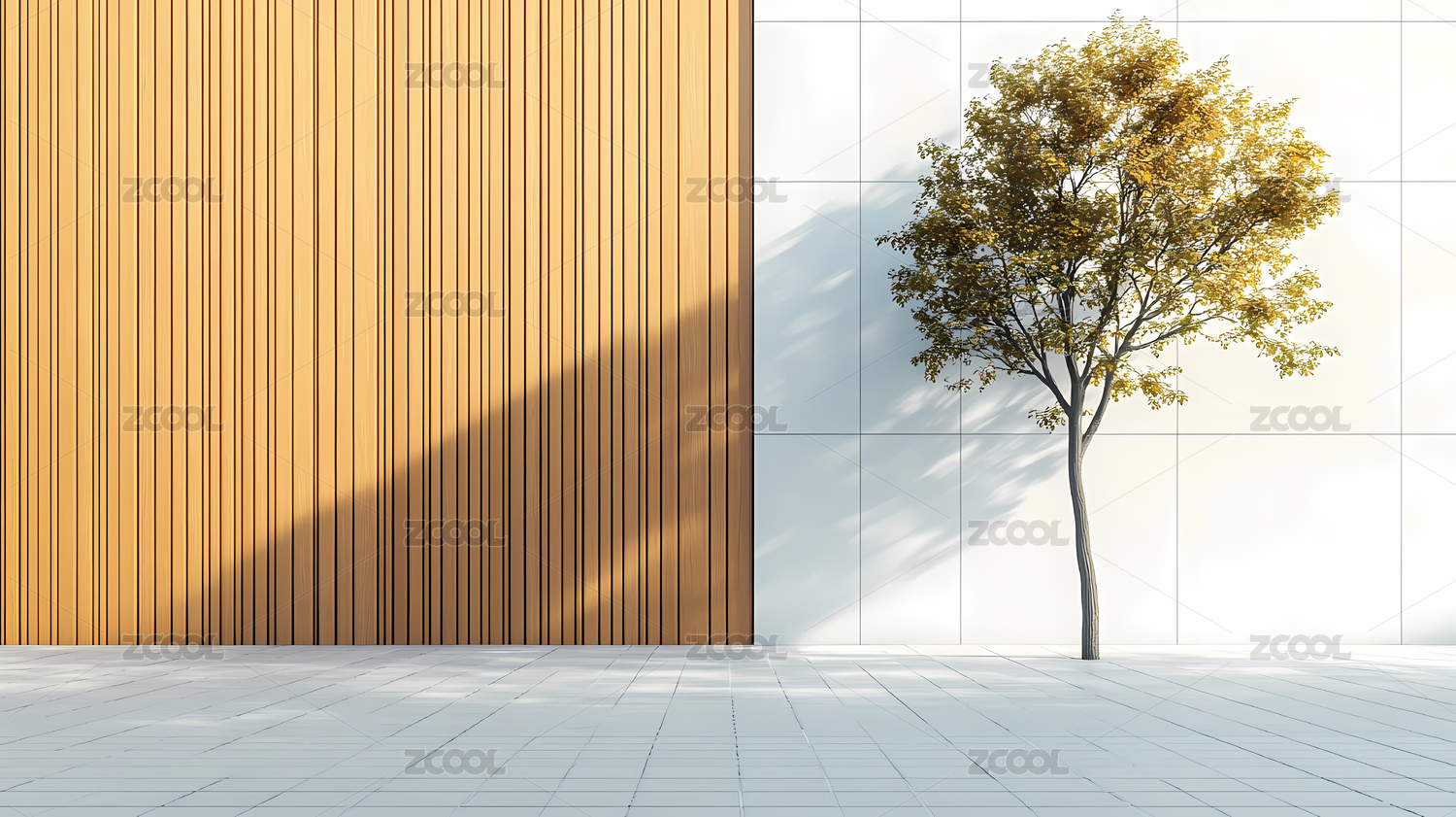 秋日树影混凝土建筑