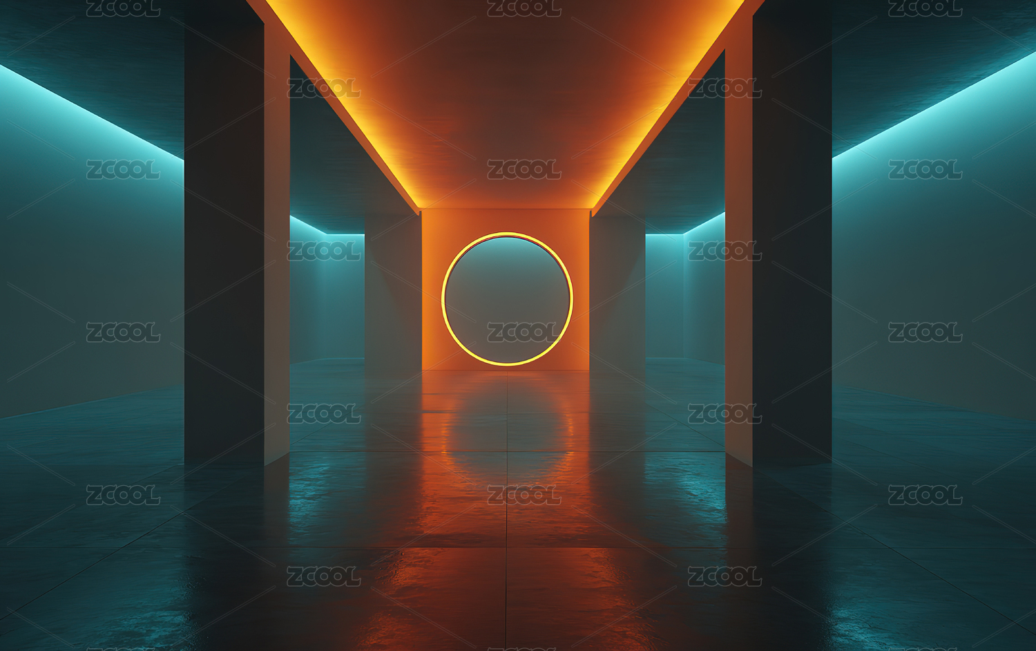 霓虹灯下的圆形光晕空间