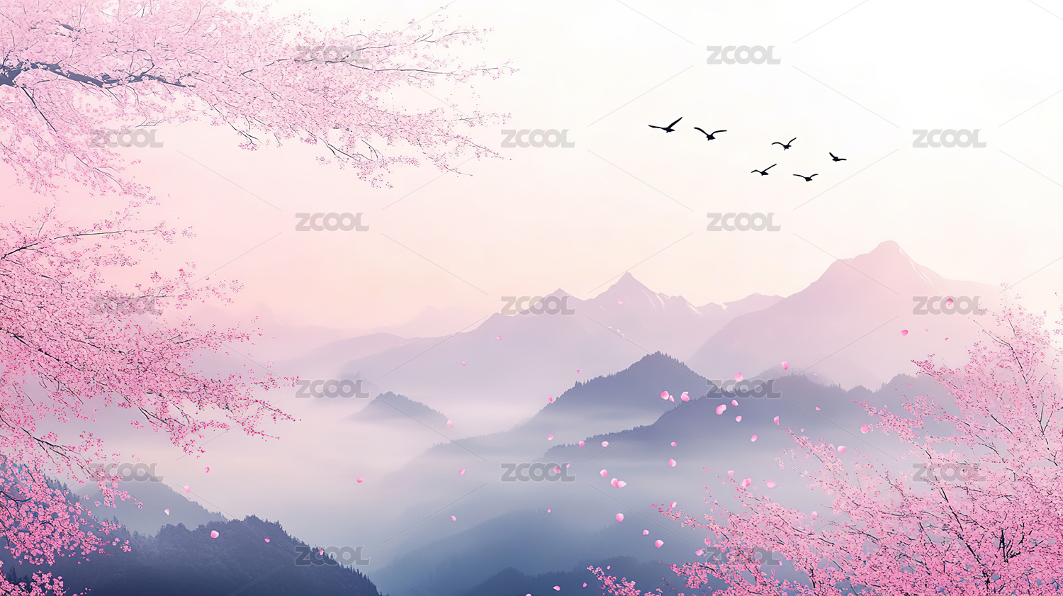 山间日暮樱花盛景