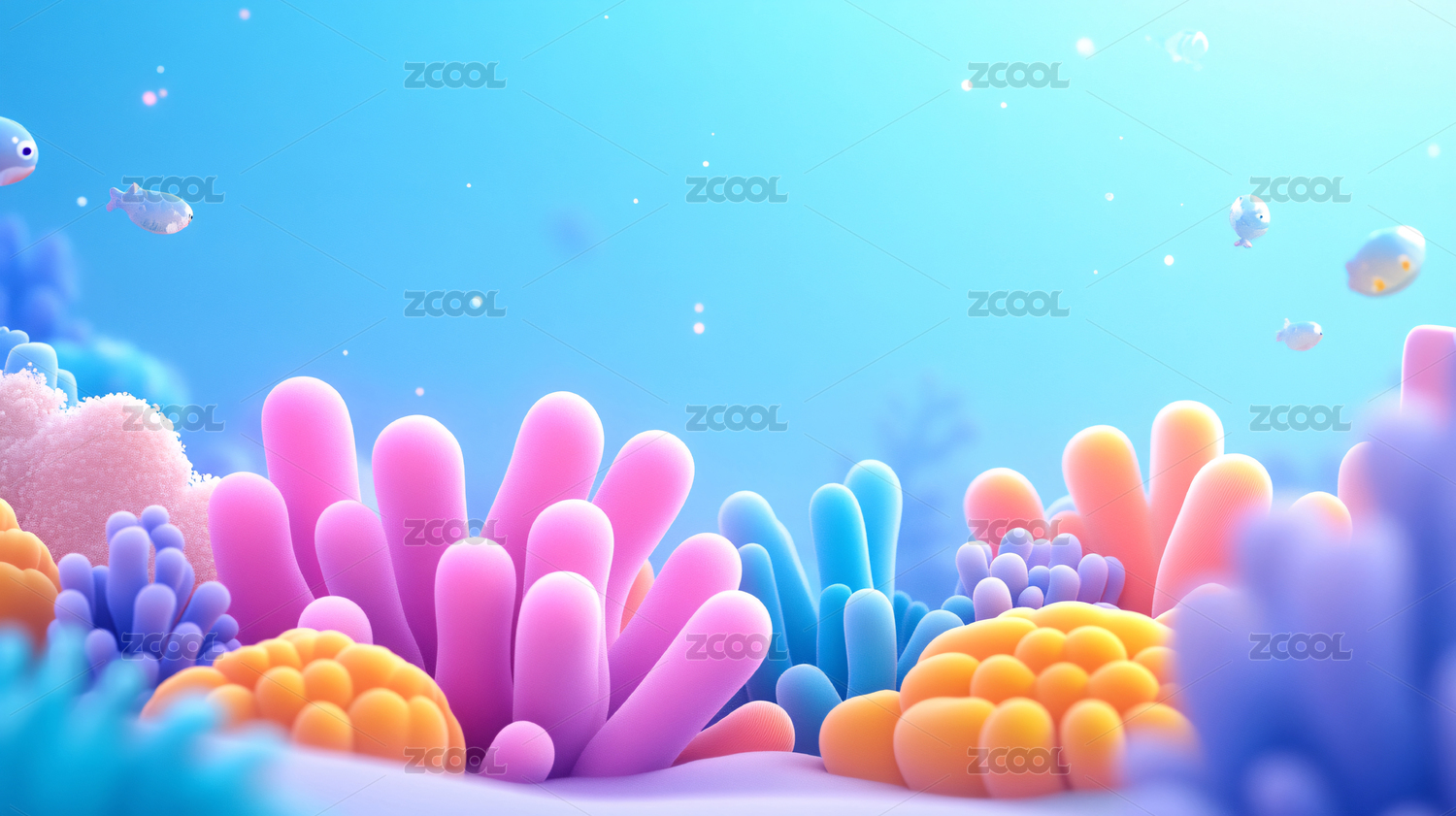 海底世界3D海洋生物珊瑚梦幻唯美自然背景