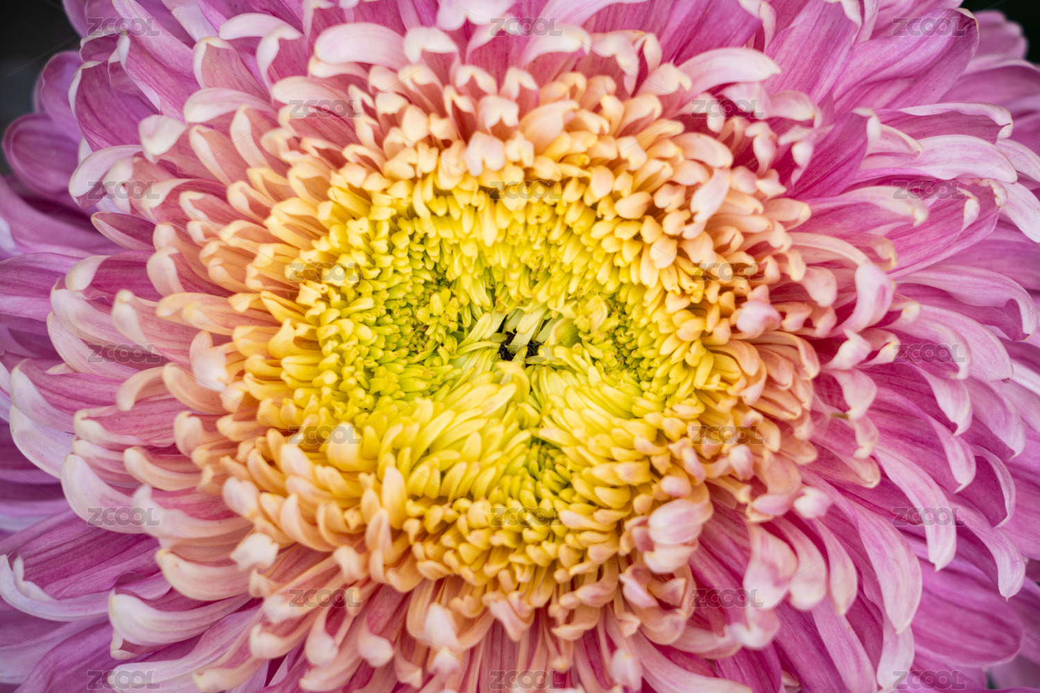 菊花展上盛开的美丽粉色菊花花蕊与水珠特写