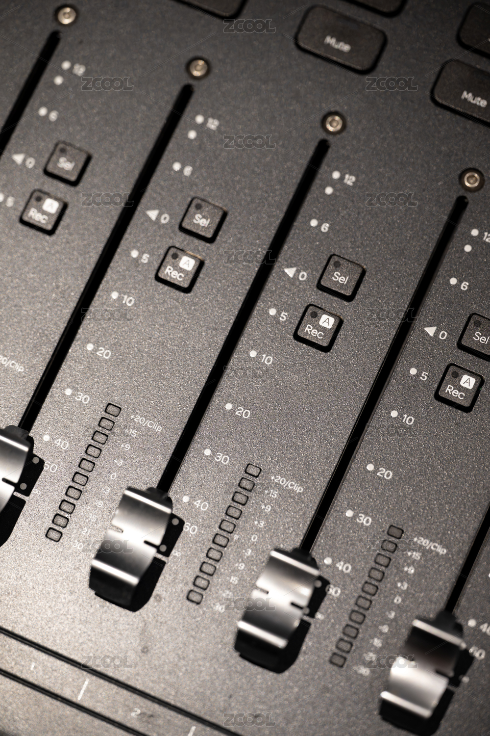 音频混音控制台的特写镜头