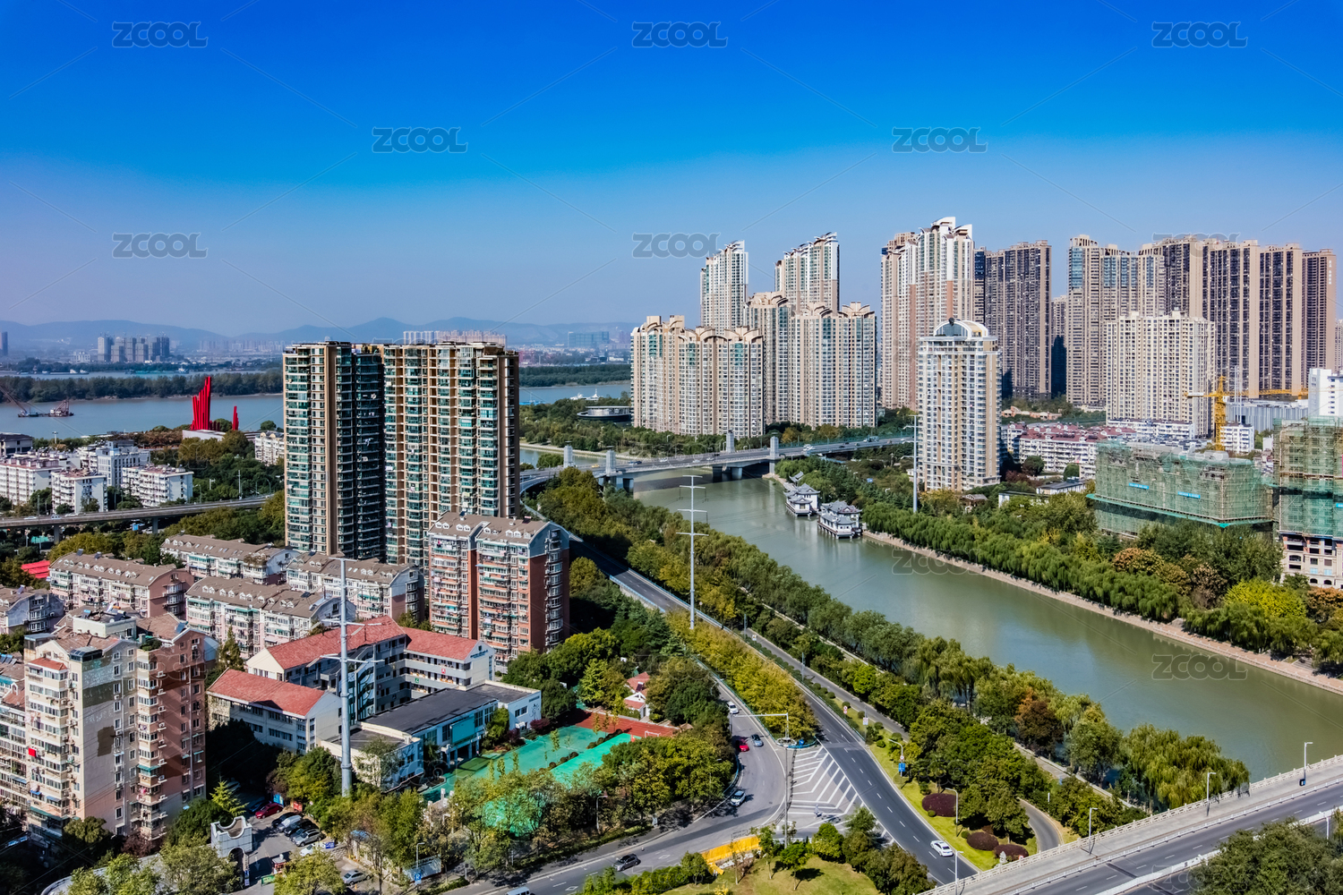 江苏省南京市秦淮河外滩城市高楼建筑环境