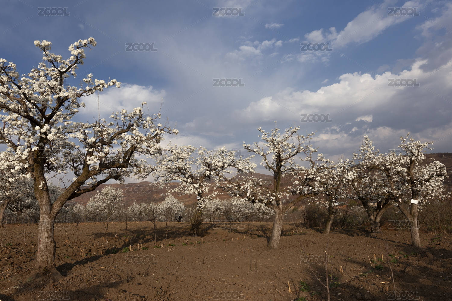 旅游,梨花,梨园,横构图,无人,彩色图片,简洁,人像背景,春天,天空