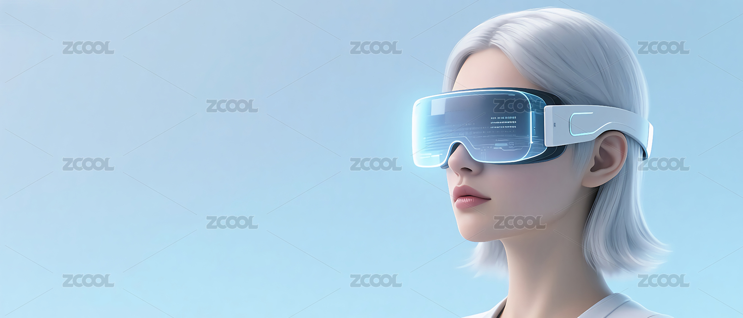 戴着VR眼镜和白色高领毛衣的欧美女性