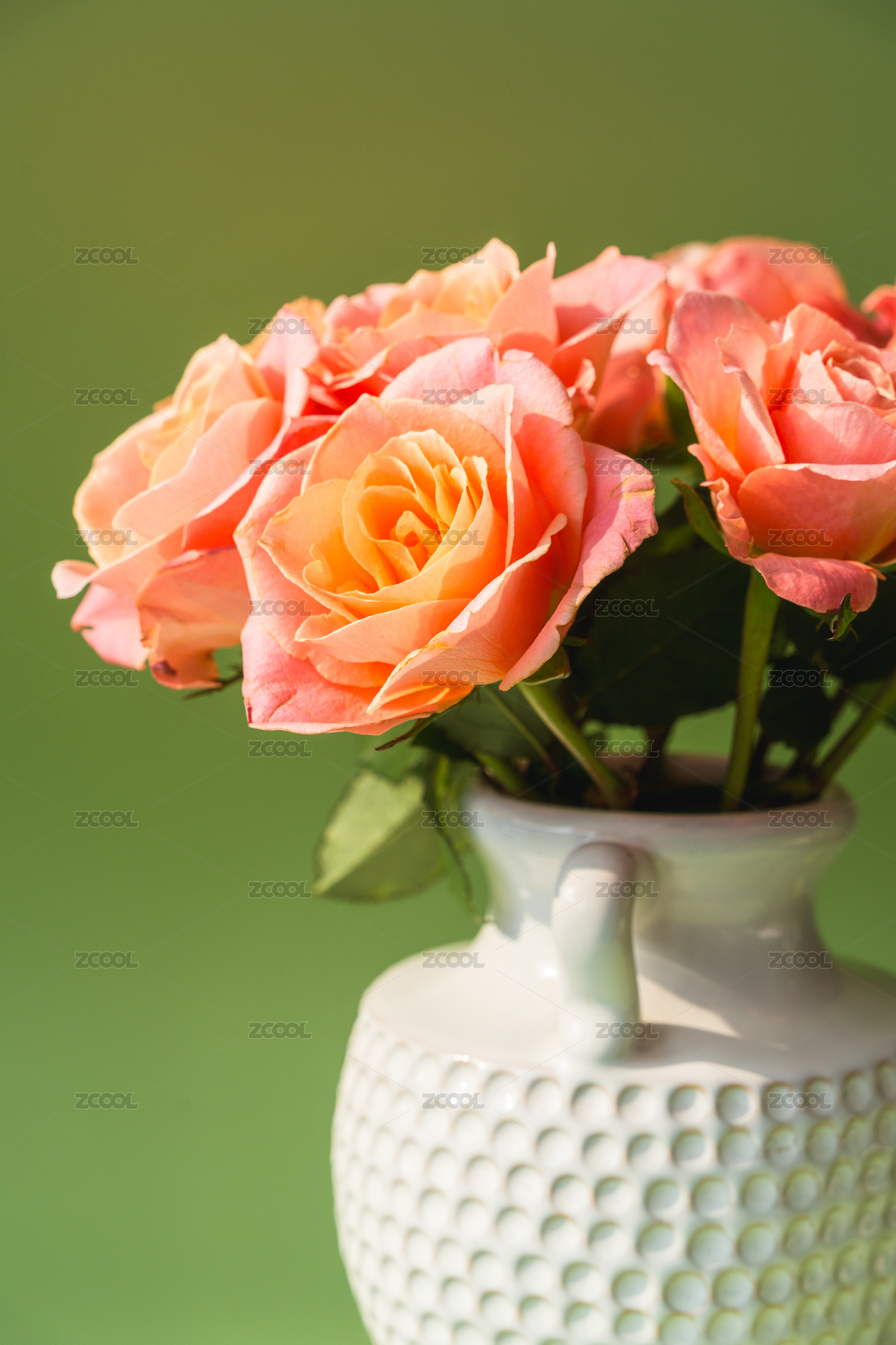 白色花瓶中的纯洁白玫瑰