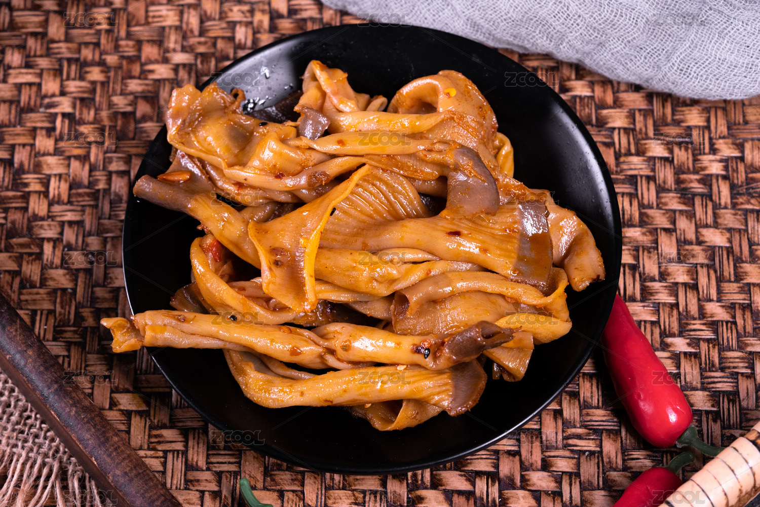 灰色背景上的麻辣鸭肠