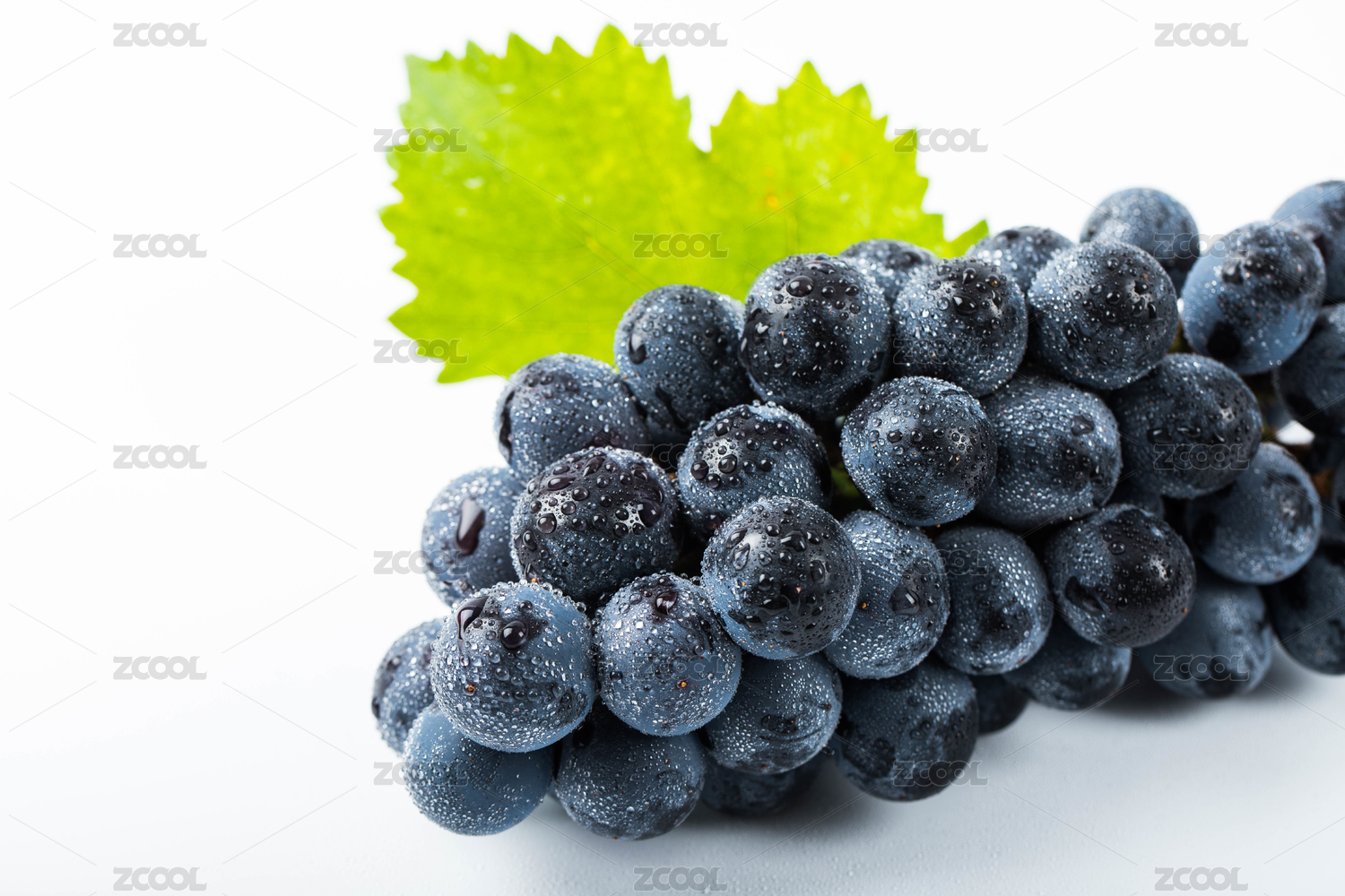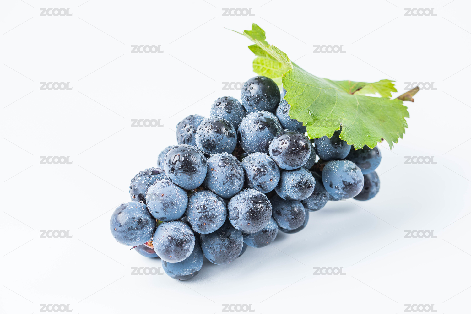 喷着水雾的新鲜深紫色葡萄,在白色背景里