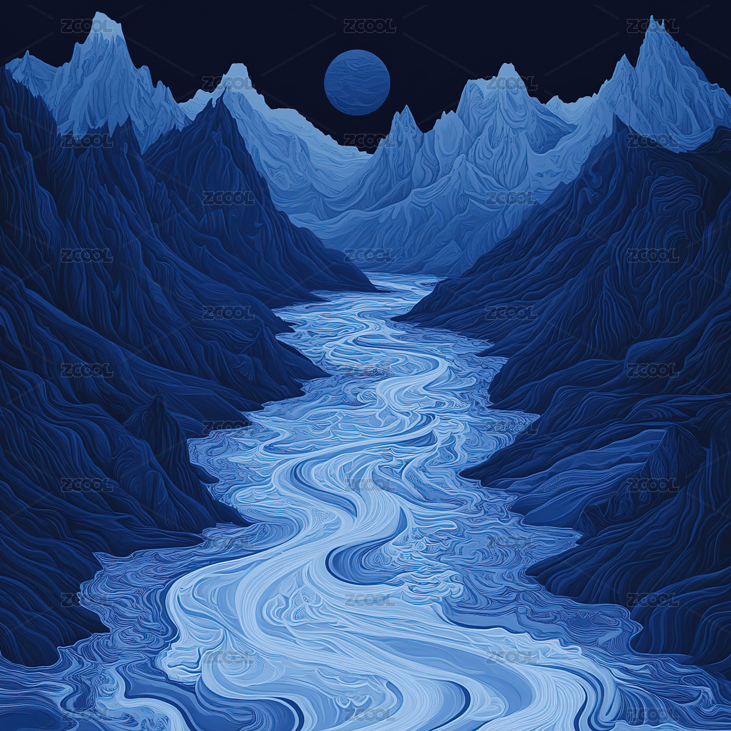 抽象蓝色山脉风景图