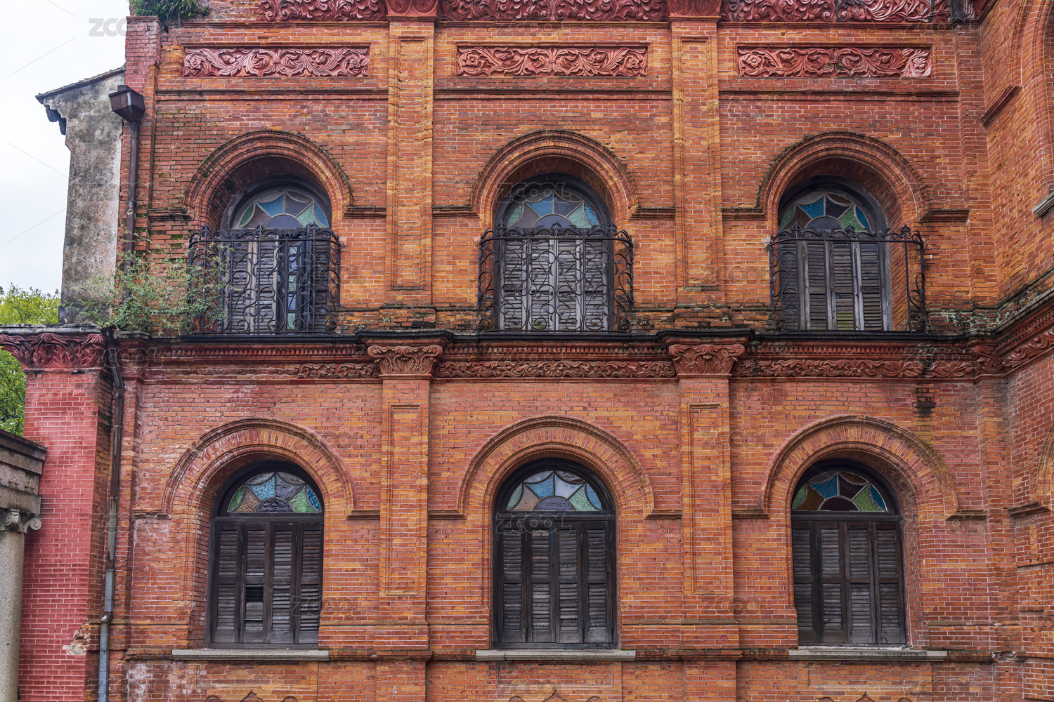 中国新疆喀什古城踏吉美蓝美食宫外墙与窗户