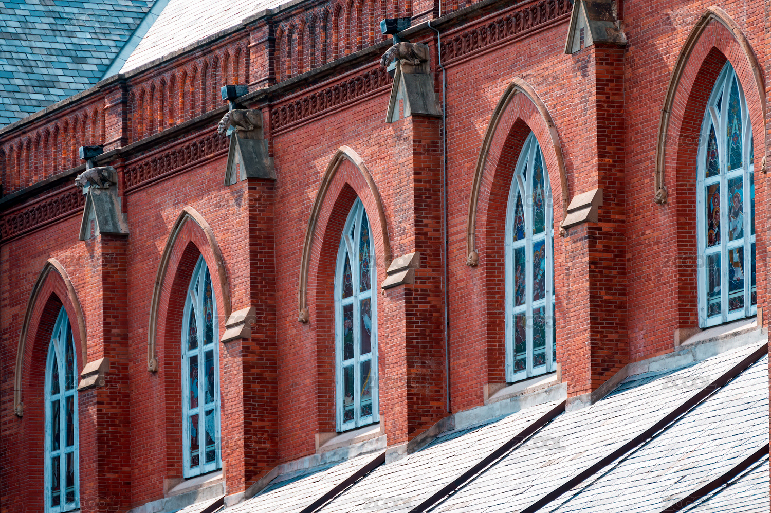 中国黑龙江哈尔滨索菲亚教堂的窗户和鸽子