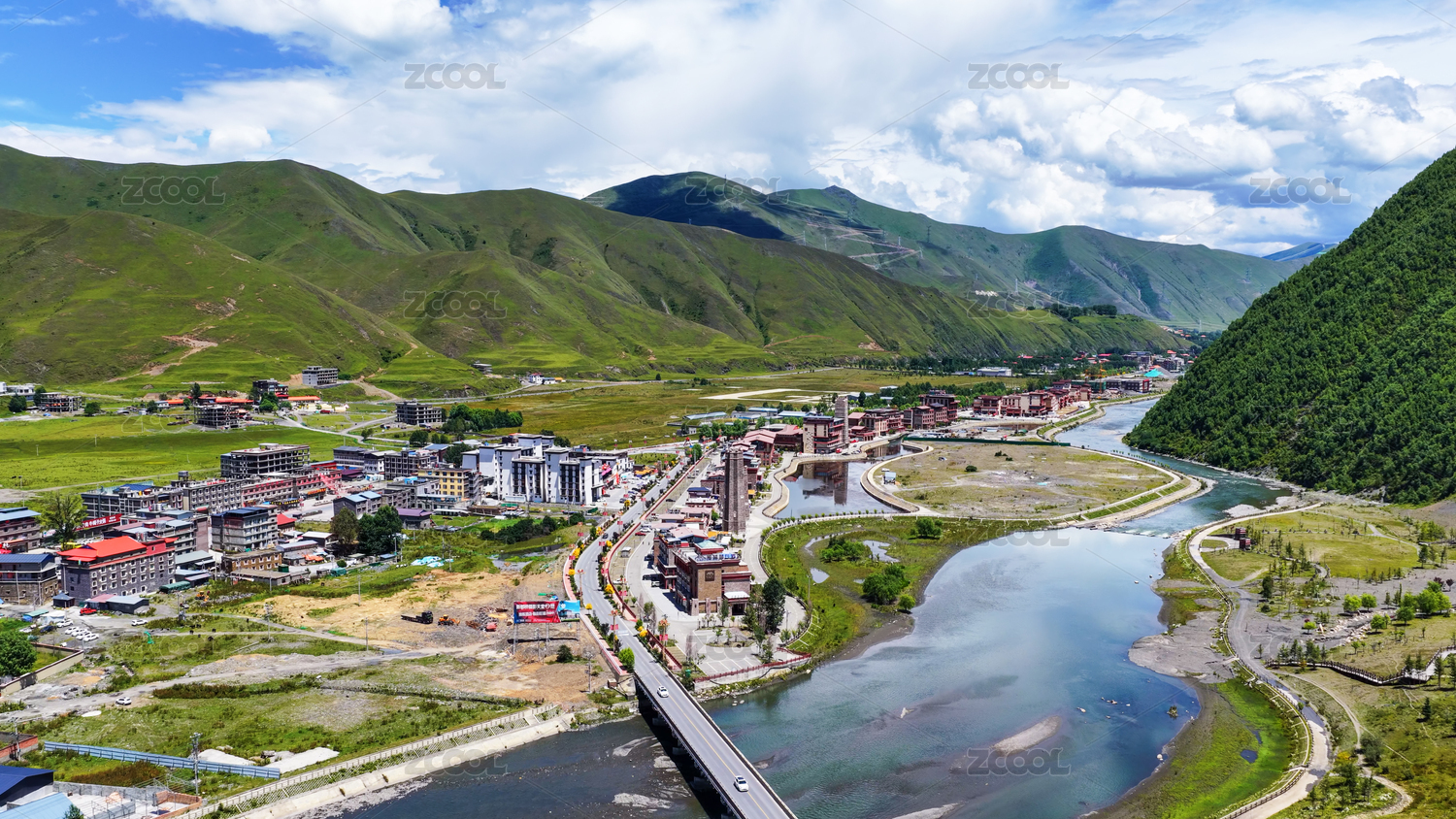 航拍夏季新都桥