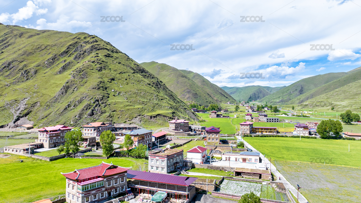青藏高原藏区村庄民居寺庙航拍