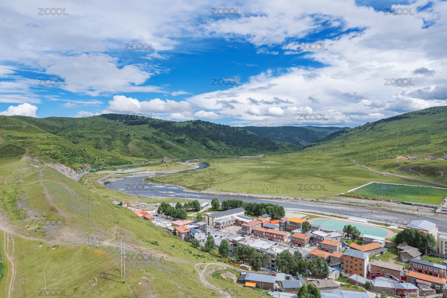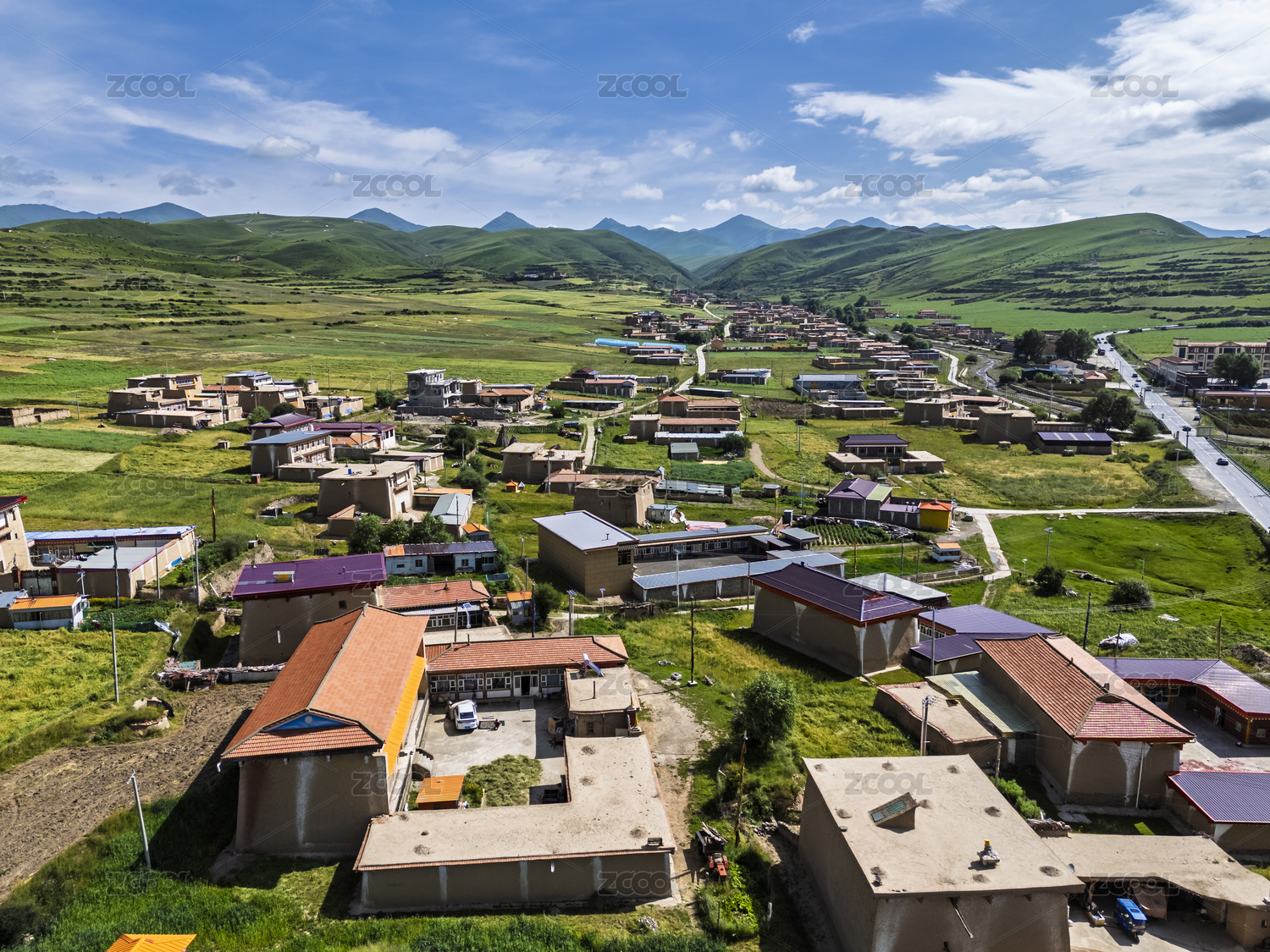 畜牧,养殖,养牛场,牛舍,航拍,高原,藏区,农业,青藏高原,地形