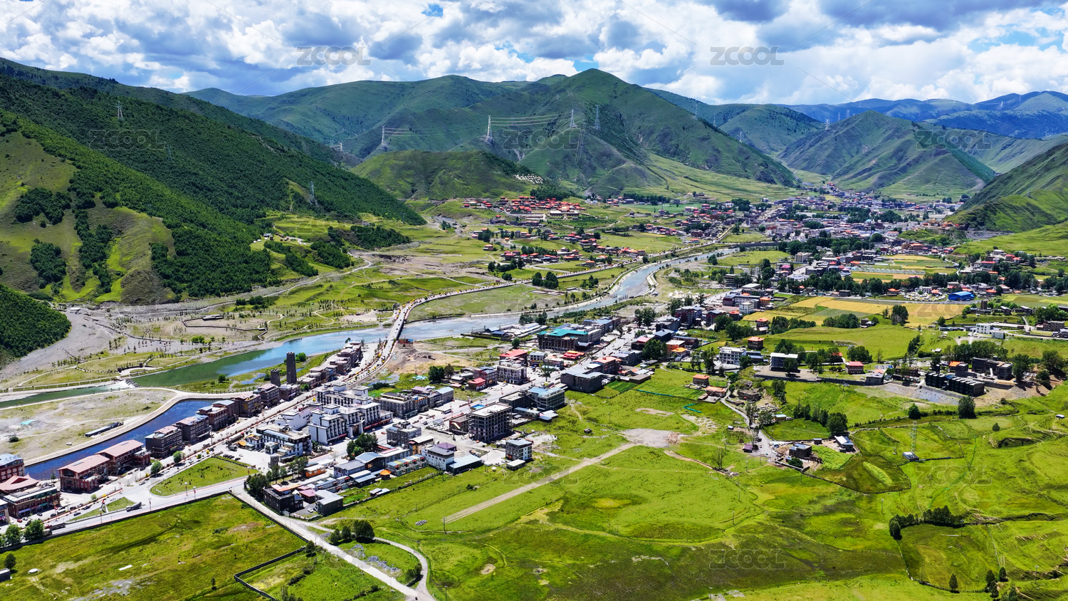 四川西部甘孜康定市甲根坝镇航拍