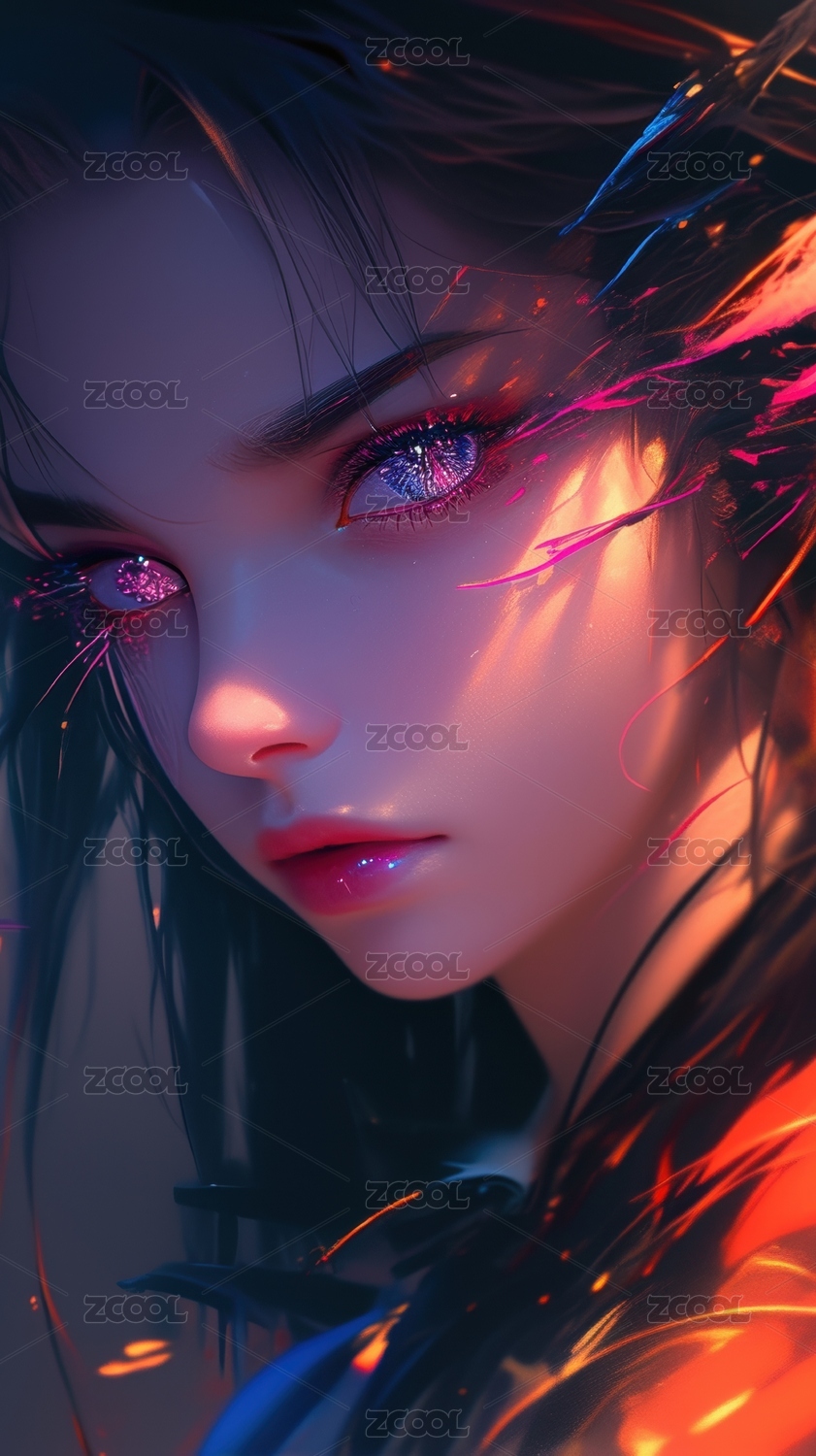 一个优雅的女生和色彩斑斓梦幻的夜晚