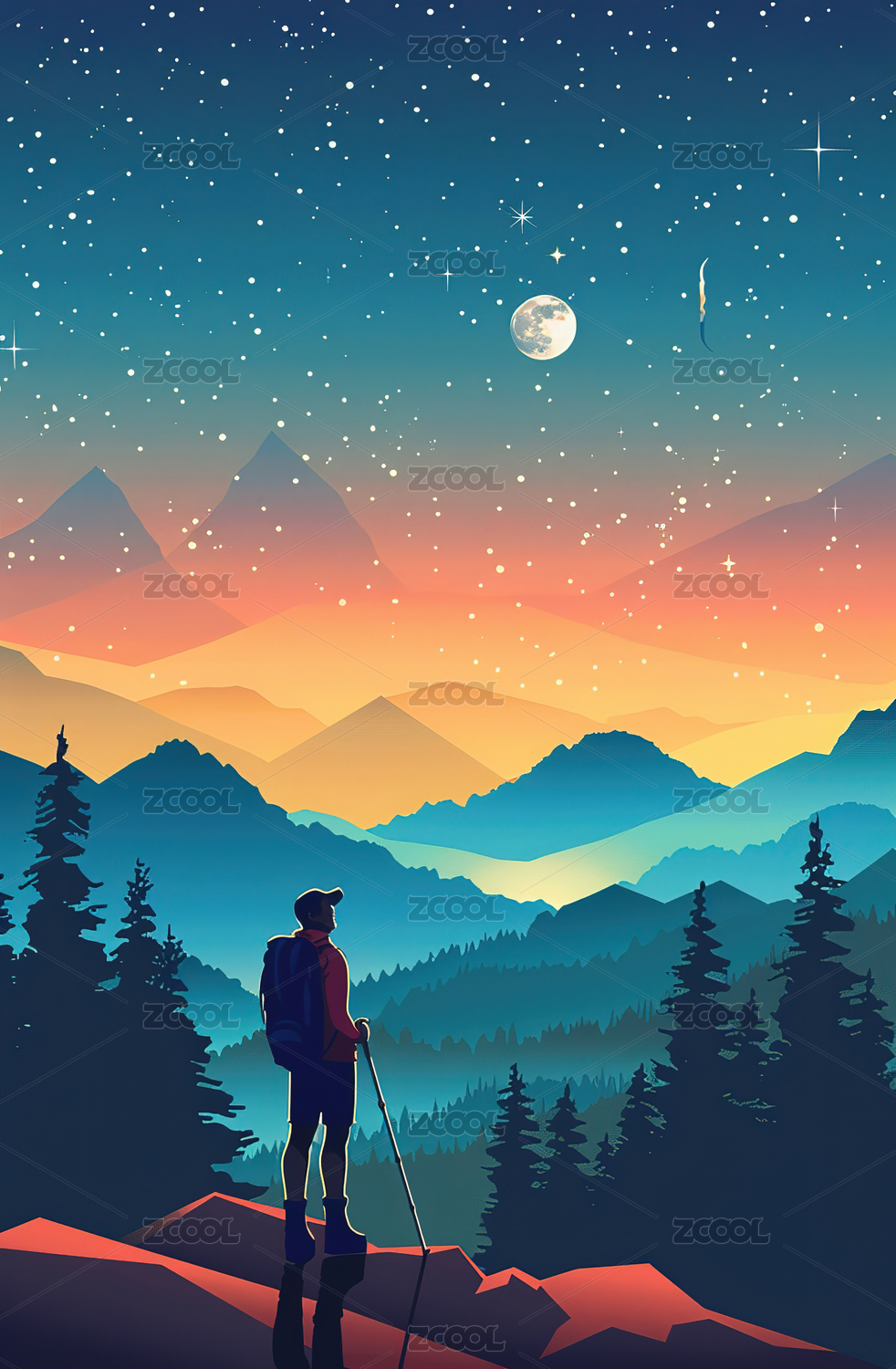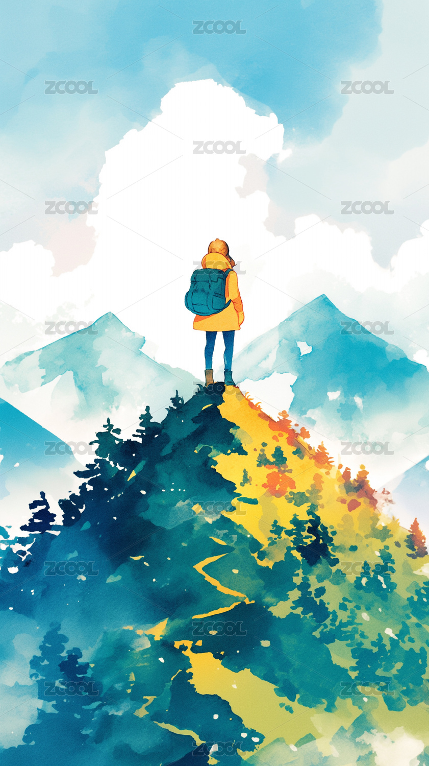 旅游,旅行,出行,插画,AIGC202404,登山,徒步,户外