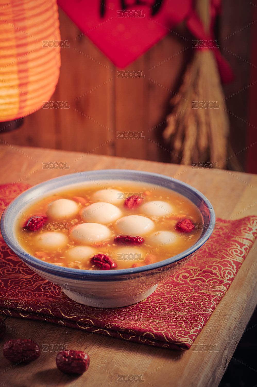 一碗养生补气血的桂圆红枣茶放在木纹桌上