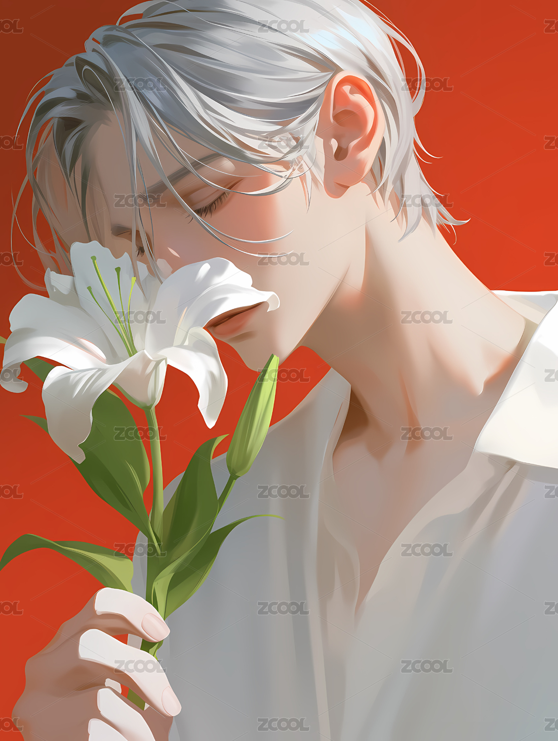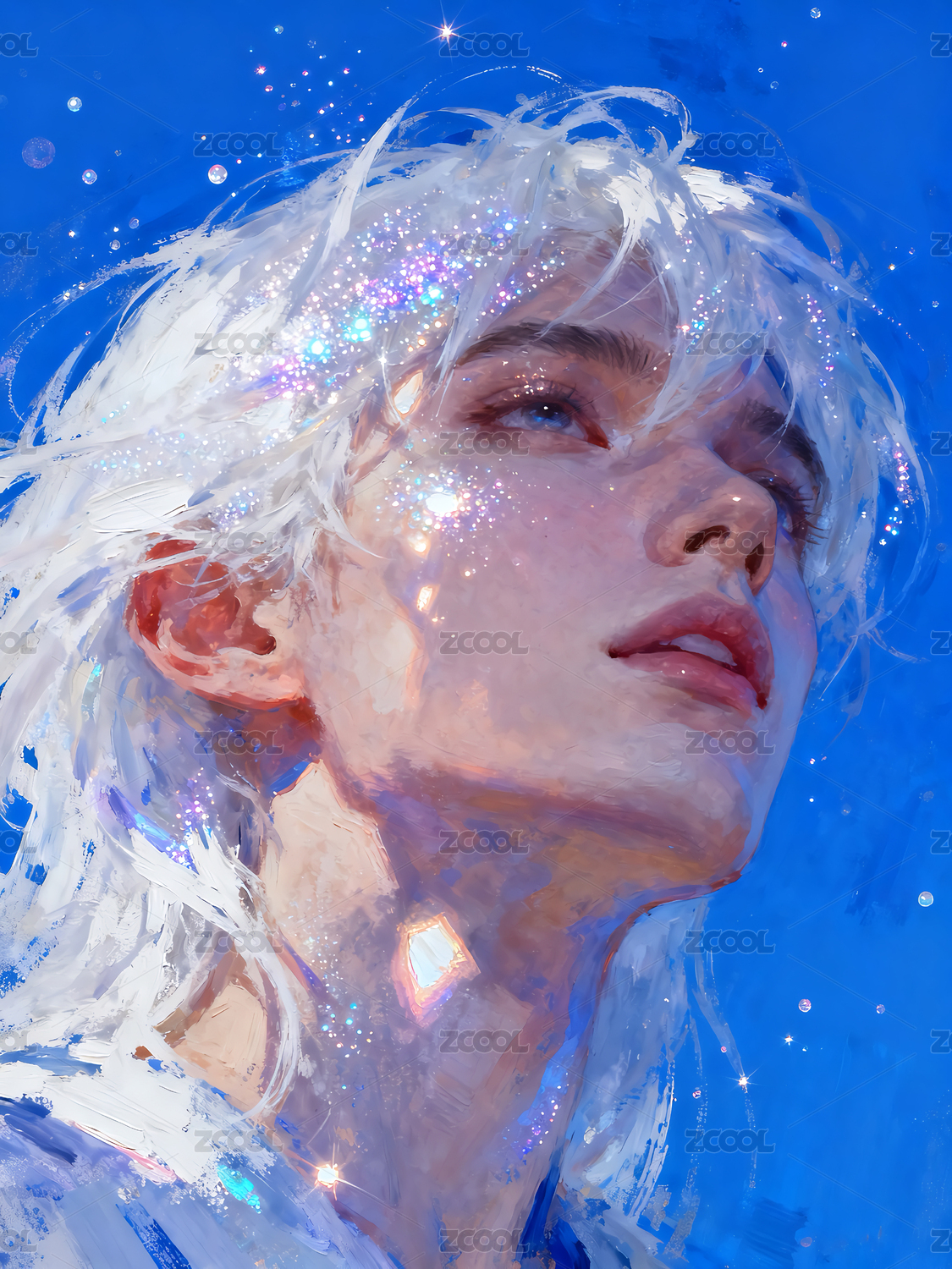 动漫, 少年, 白发, 侧脸, 彩虹, 光晕, 服装, 潮流, 时尚, 梦幻