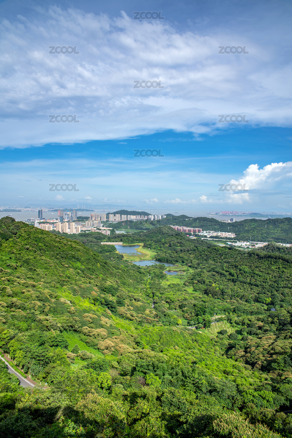 半山半城/羊台山森林公园山景风光和深圳城市高楼