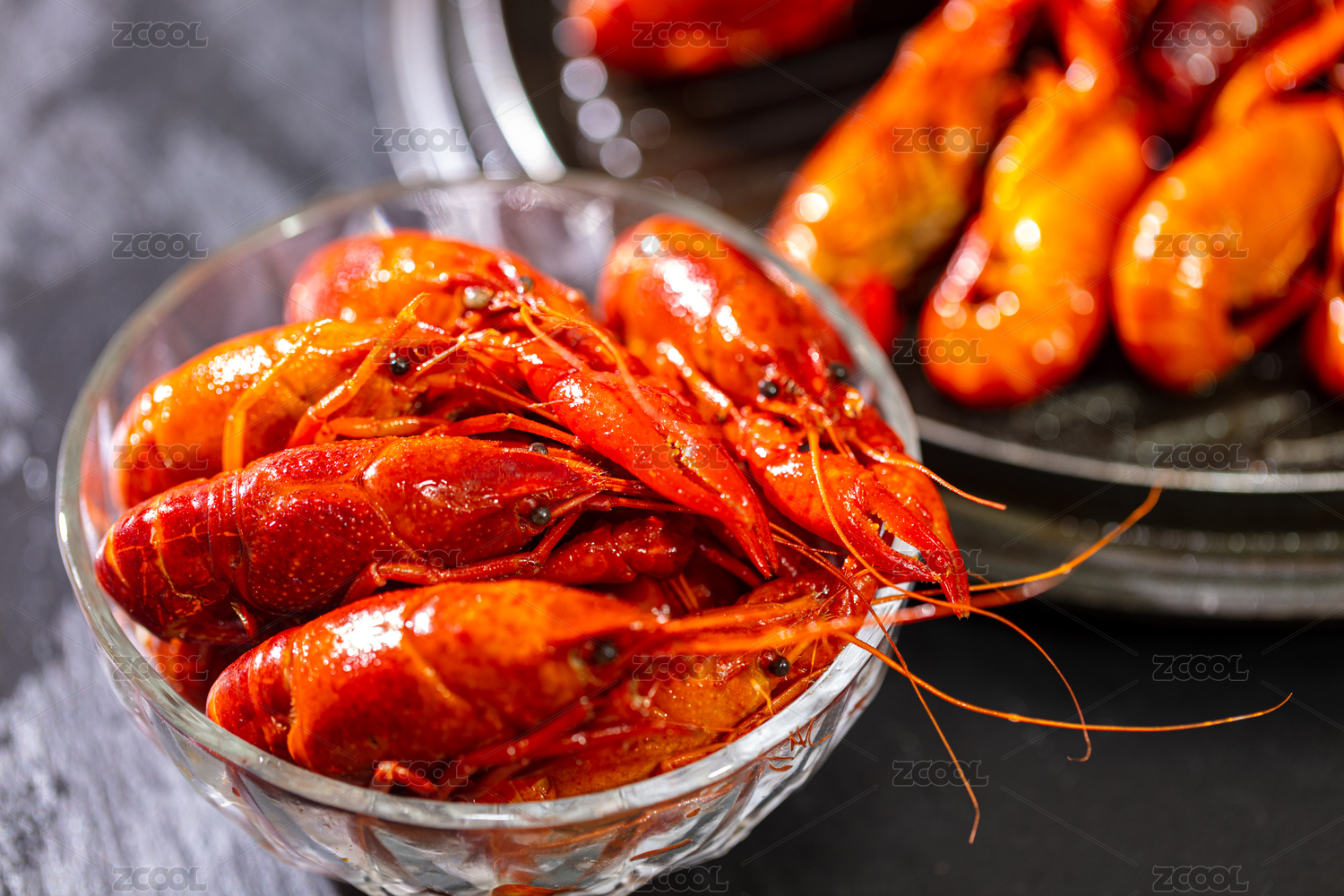 深色背景下的小龙虾