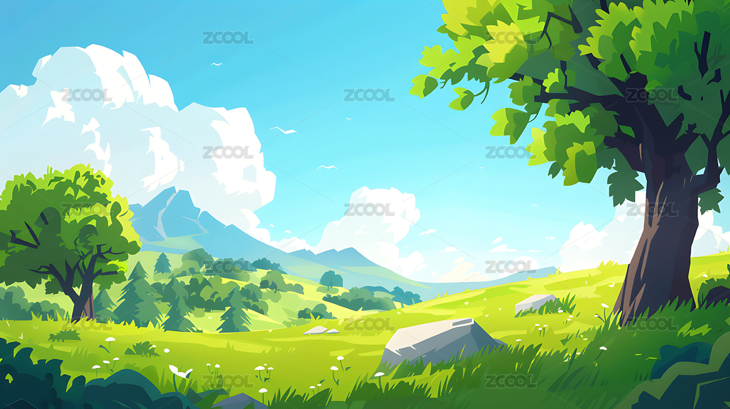 风光,自然,蓝天,白云,树木,风景,宁静,清新,阳光,环境
